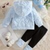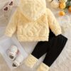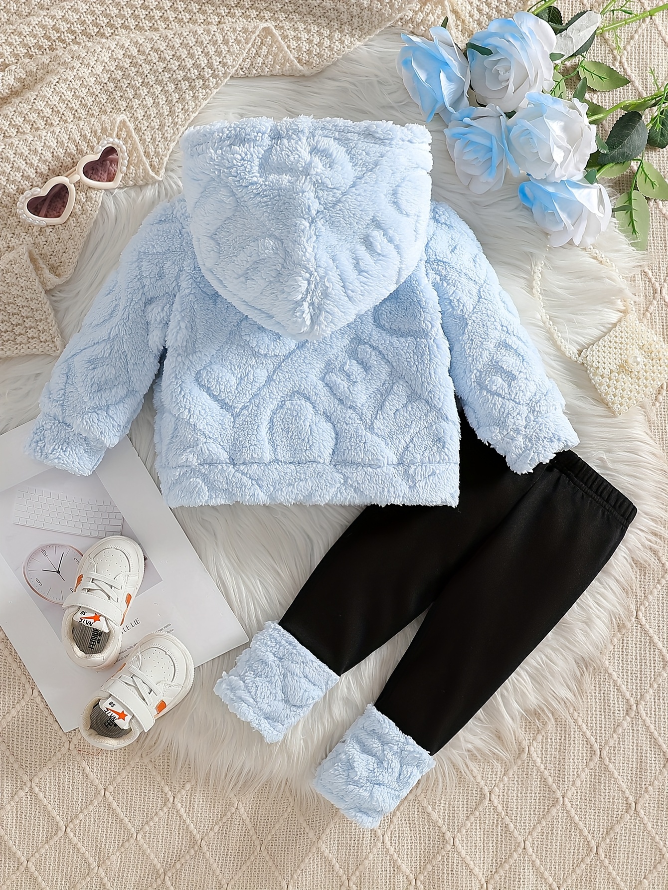 - دفء استثنائي: يتميز بسُترة صوفية مزدوجة الجوانب وبنطال دافئ ومرن، يوفران حماية مثالية من برودة الخريف والشتاء، ليمنحا طفلتك شعورًا بالاحتضان والدفء طوال اليوم.