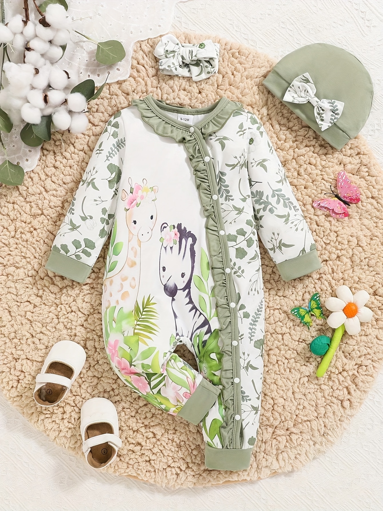 - طقم متكامل وعصري: يأتي الرومبر مع قبعة مطابقة تكمل الإطلالة وتوفر دفئًا إضافيًا ورقيقًا لرأس صغيرتكِ، لتكون جاهزة لأي مغامرة بأسلوب متناسق.