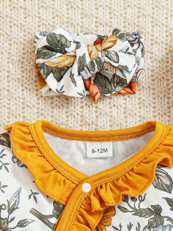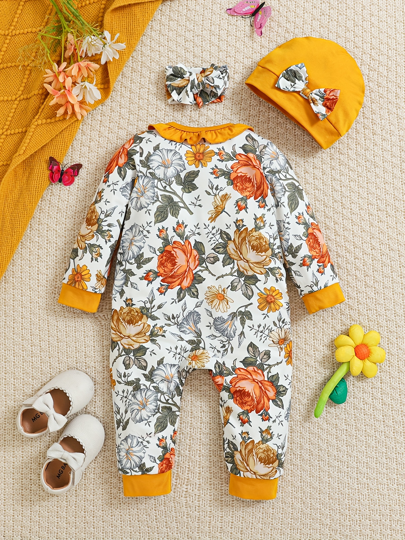 - تصميم زهري ساحر: يجمع بين اللون الأبيض النقي وزهور برتقالية وسوداء أنيقة، ليضفي لمسة من البهجة والرقة على إطلالة صغيرتكِ في كل مناسبة، سواء كانت داخل المنزل أو خارجه.