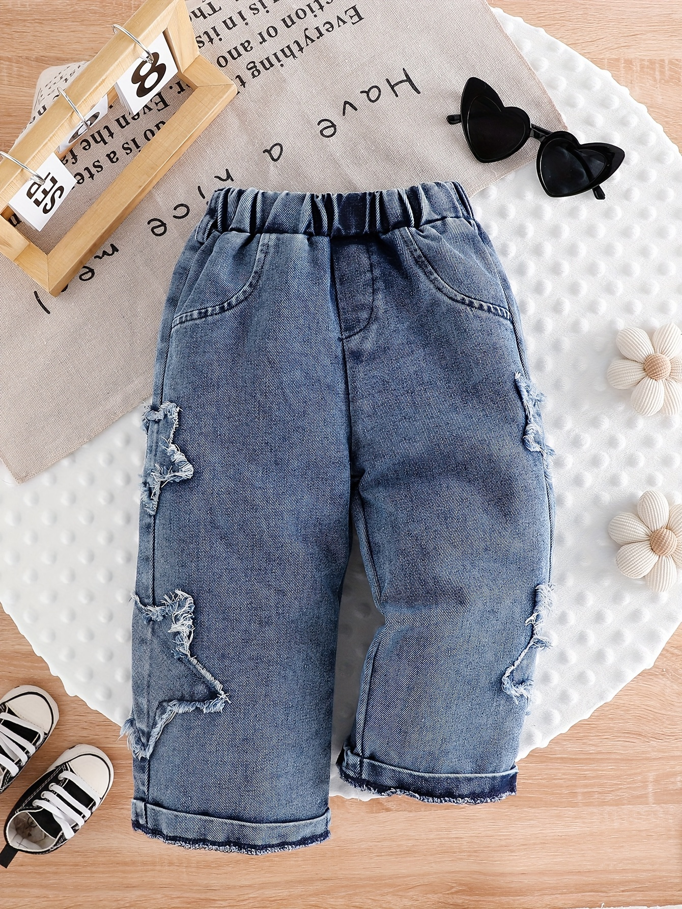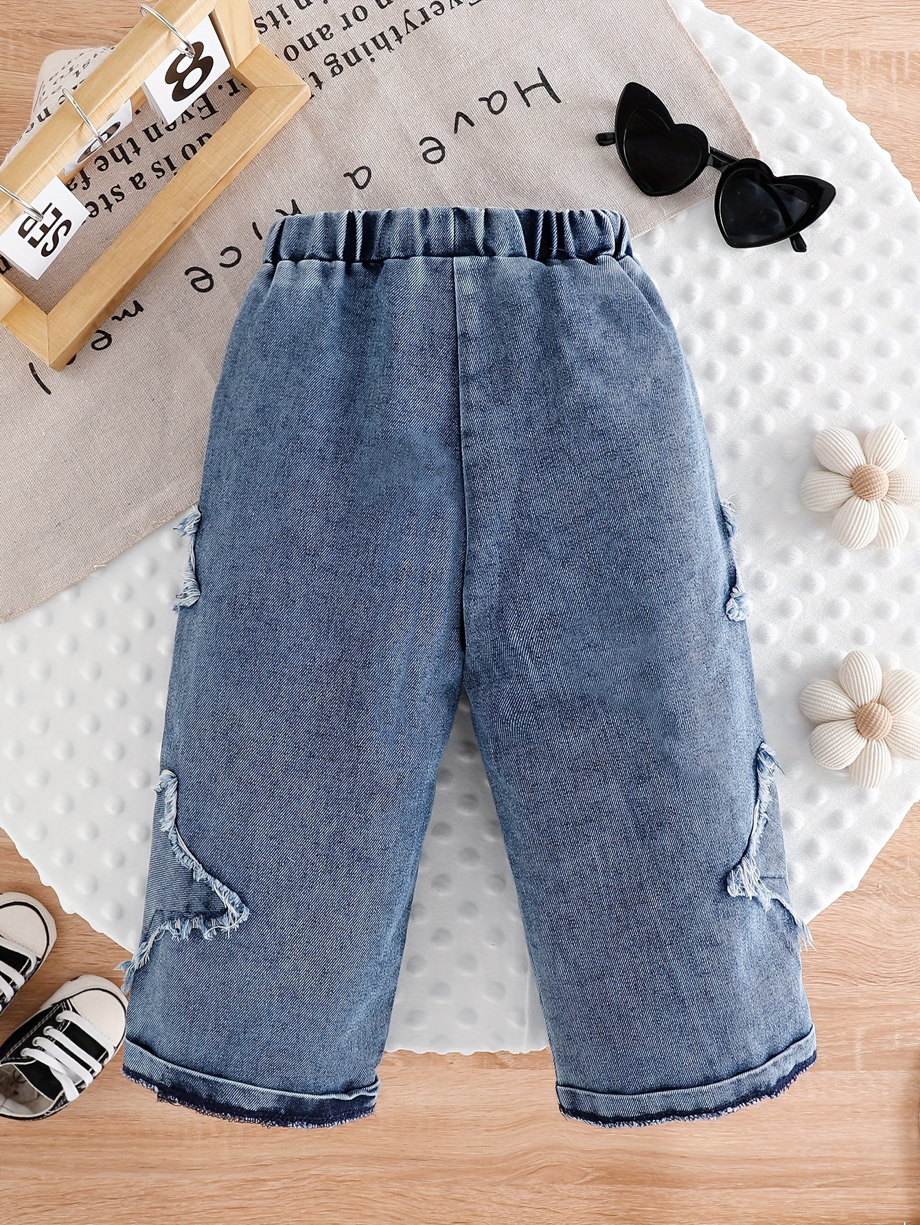 امنحي أميرتكِ الصغيرة إطلالة عصرية ومريحة لا مثيل لها مع بنطلون الجينز الواسع هذا، المصمم خصيصاً ليجمع بين حرية الحركة والأناقة التي تخطف الأنظار. دعيها تتألق وتمرح بكل ثقة وراحة في كل مغامراتها اليومية، من اللعب في الحديقة إلى النزهات العائلية.