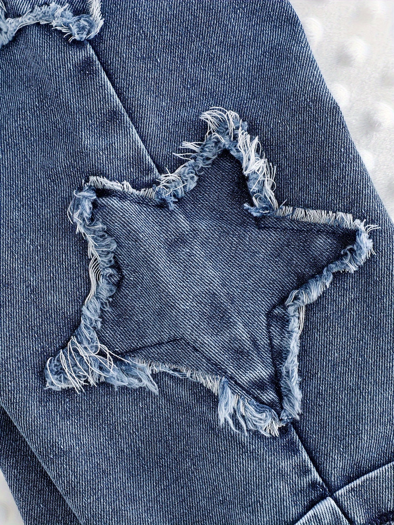 - تفاصيل عصرية وجذابة: يتميز بحافة سفلية مهترئة بأناقة ولمسة مميزة تشبه الجينز العصري، مع جيب على شكل نجمة خماسية يضيف لمسة من البهجة والجاذبية الفريدة.