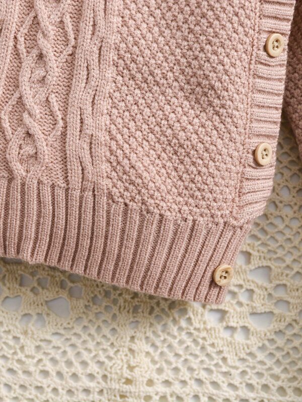 امنحي صغيرتك الدفء والأناقة التي تستحقها هذا الخريف والشتاء مع كارديغان الكابل الوردي الرائع! مصمم خصيصًا ليجمع بين الراحة الفائقة والمظهر الجذاب، ليضفي لمسة من البهجة على إطلالاتها اليومية ويجعلها تتألق في كل مكان تذهب إليه.