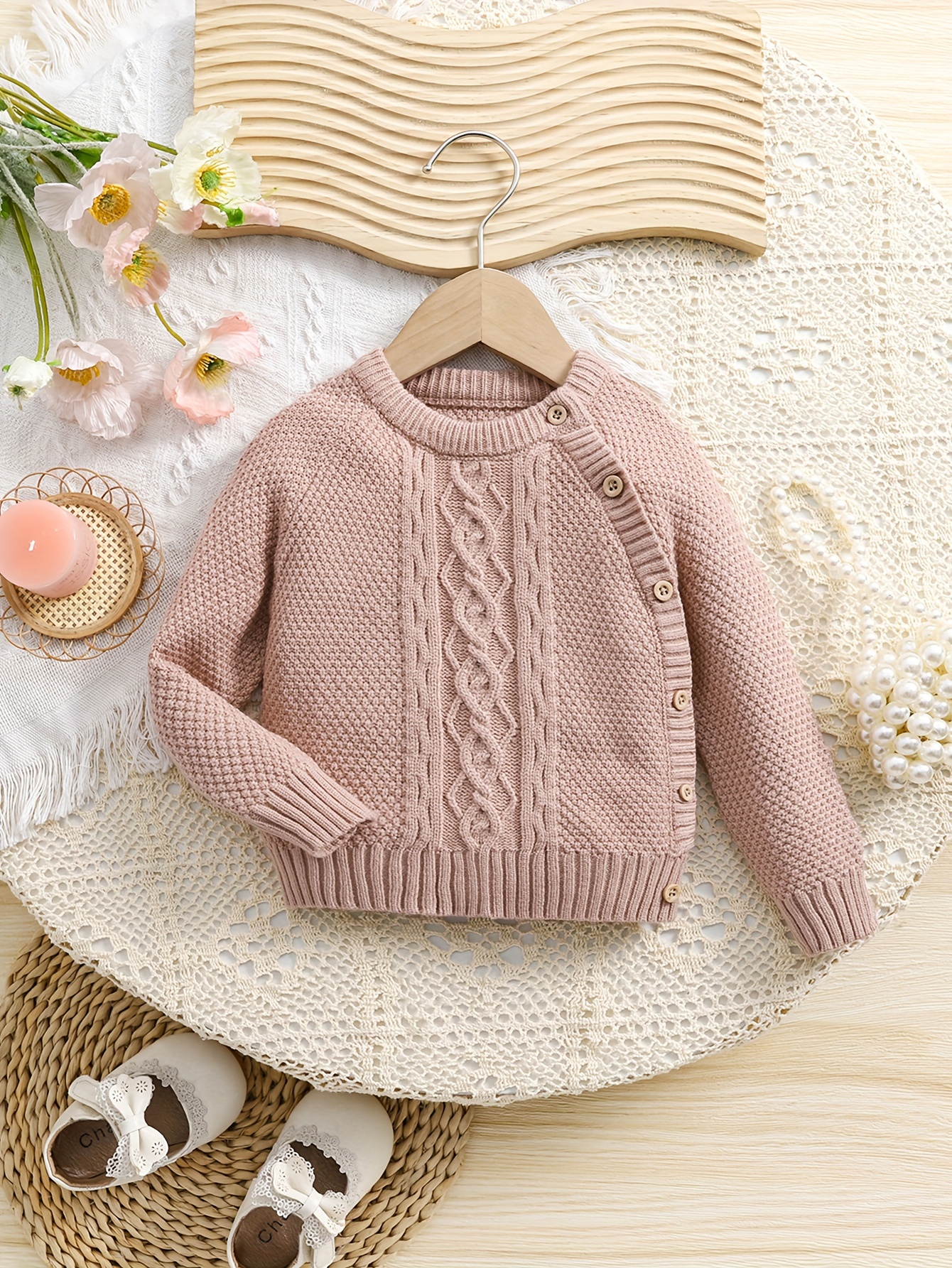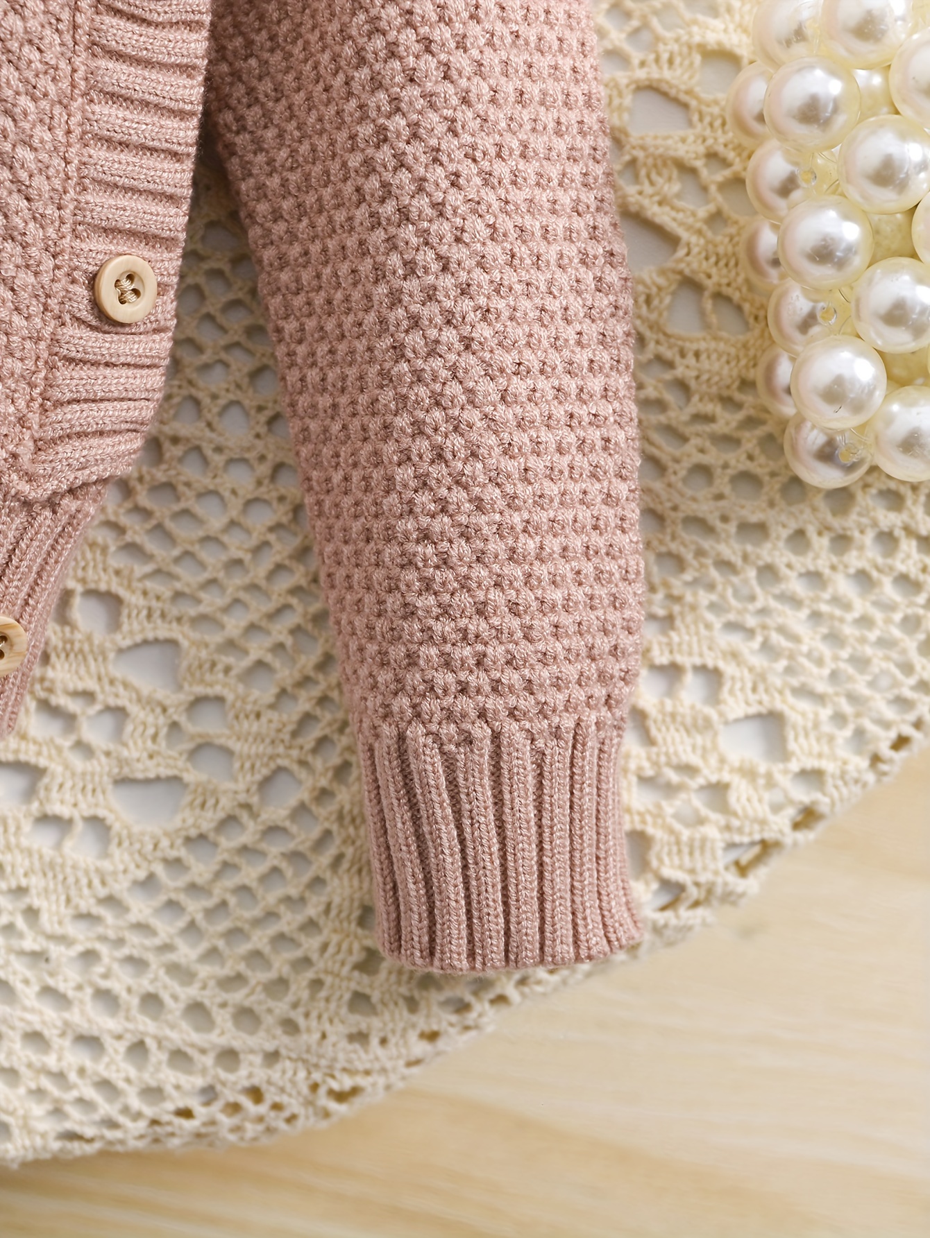 امنحي صغيرتك الدفء والأناقة التي تستحقها هذا الخريف والشتاء مع كارديغان الكابل الوردي الرائع! مصمم خصيصًا ليجمع بين الراحة الفائقة والمظهر الجذاب، ليضفي لمسة من البهجة على إطلالاتها اليومية ويجعلها تتألق في كل مكان تذهب إليه.