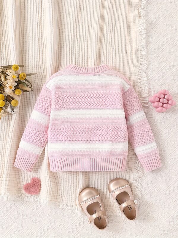 دللي صغيرتكِ في مواسم البرد بقطعة فريدة تجمع بين الدفء الفائق والأناقة العصرية. نقدم لكِ الكنزة الشتوية المخططة المصممة خصيصًا لتمنح طفلتكِ الراحة المطلقة والمظهر الجذاب، لتضيء أيامها بألوان الفرح والحياة.