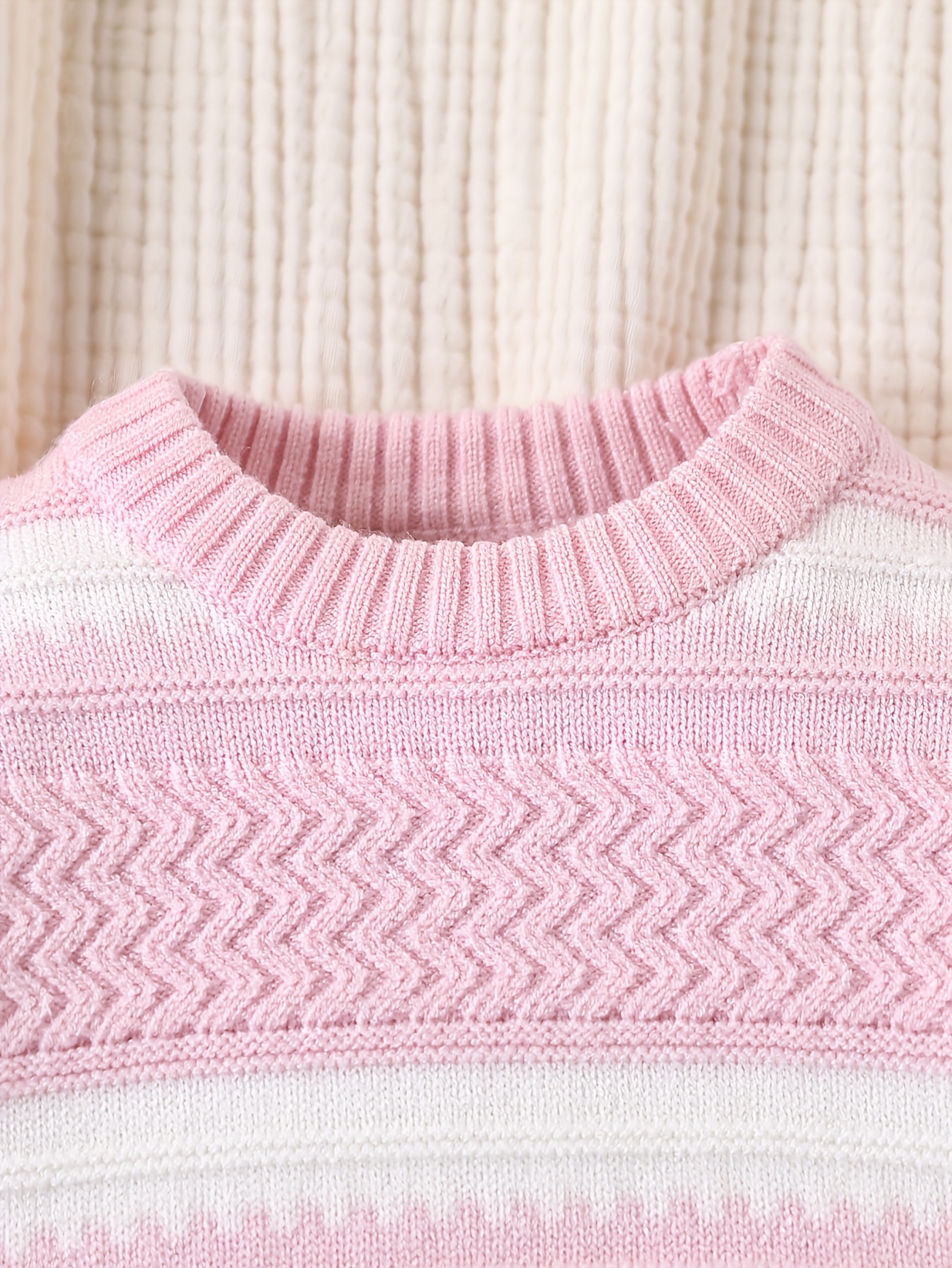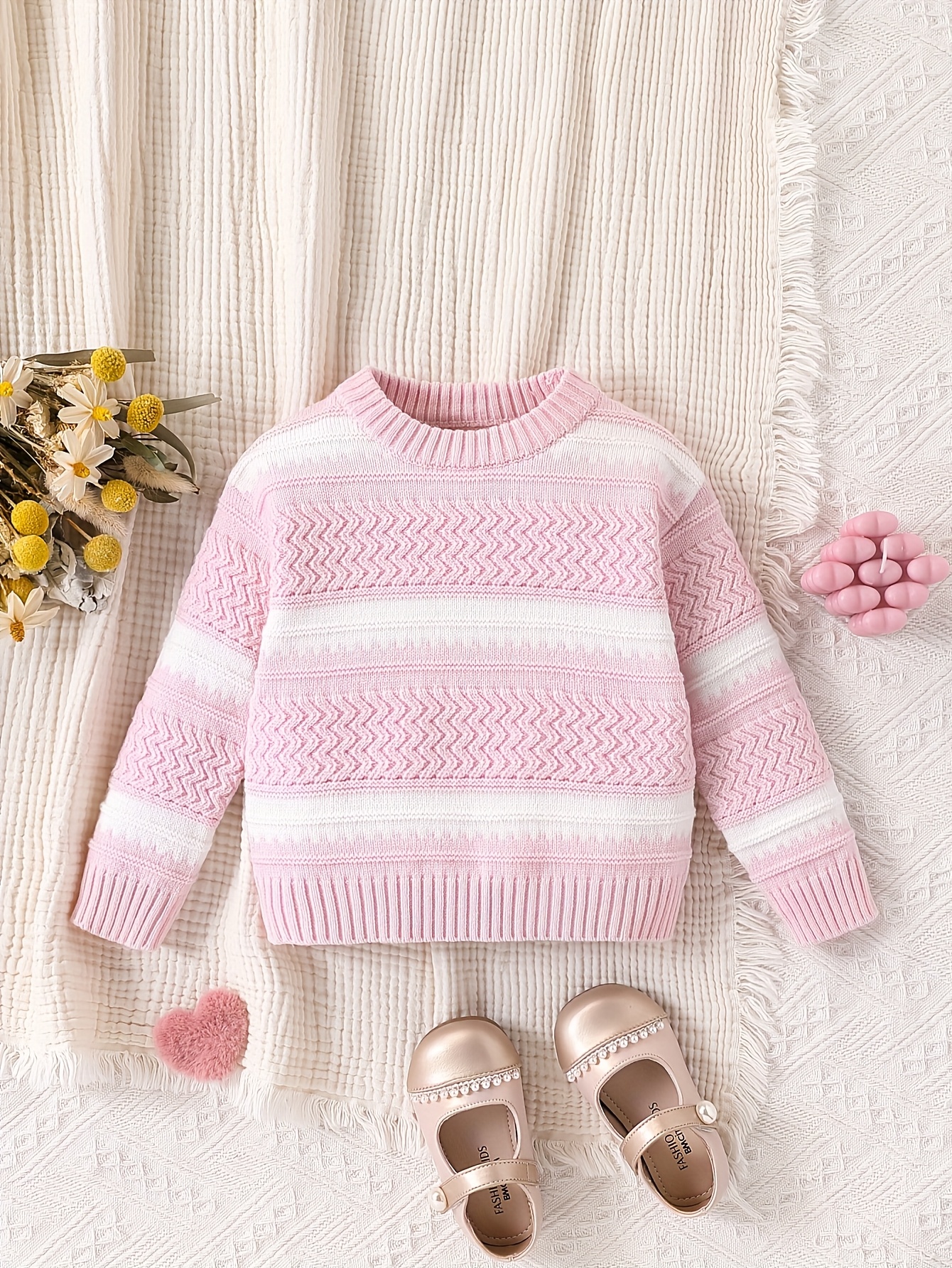 دللي صغيرتكِ في مواسم البرد بقطعة فريدة تجمع بين الدفء الفائق والأناقة العصرية. نقدم لكِ الكنزة الشتوية المخططة المصممة خصيصًا لتمنح طفلتكِ الراحة المطلقة والمظهر الجذاب، لتضيء أيامها بألوان الفرح والحياة.