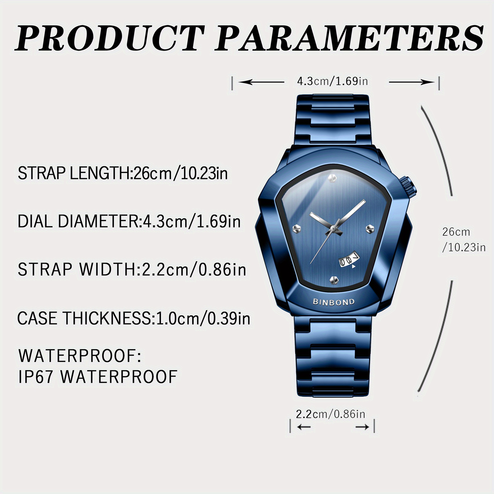 • تصميم متين وفاخر: يأتي السوار مصنوعًا من الفولاذ المقاوم للصدأ عالي الجودة لراحة فائقة ومتانة تدوم، بينما يضفي هيكل الساعة المصنوع من السبائك لمسة من القوة والرقي.