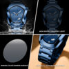 • مينا أزرق ساحر وعقارب واضحة: تتميز بمينا أزرق عميق يأسُر الأبصار، مع عقارب واضحة لسهولة قراءة الوقت في لمح البصر، مما يضفي لمسة من الأناقة والجاذبية.