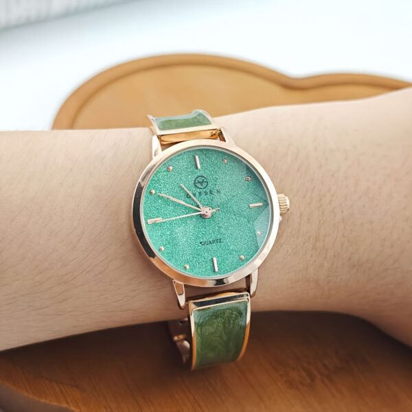 ارتقي بإطلالتك إلى مستوى جديد من الرقي مع هذه الساعة النسائية الزرقاء الآسرة. صُممت لتكون أكثر من مجرد أداة لمعرفة الوقت، فهي قطعة فنية تعكس ذوقك الرفيع وشخصيتك العصرية المتألقة. مثالية لكل امرأة تبحث عن الأناقة والدقة في آن واحد.