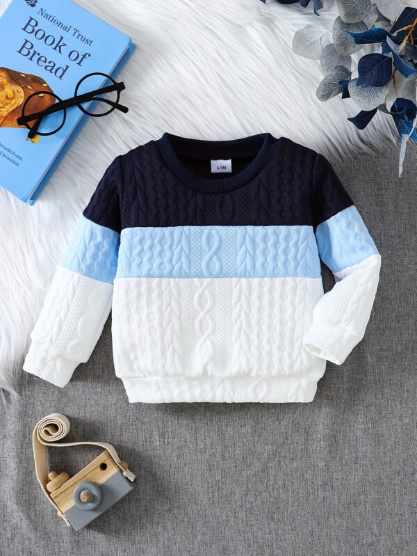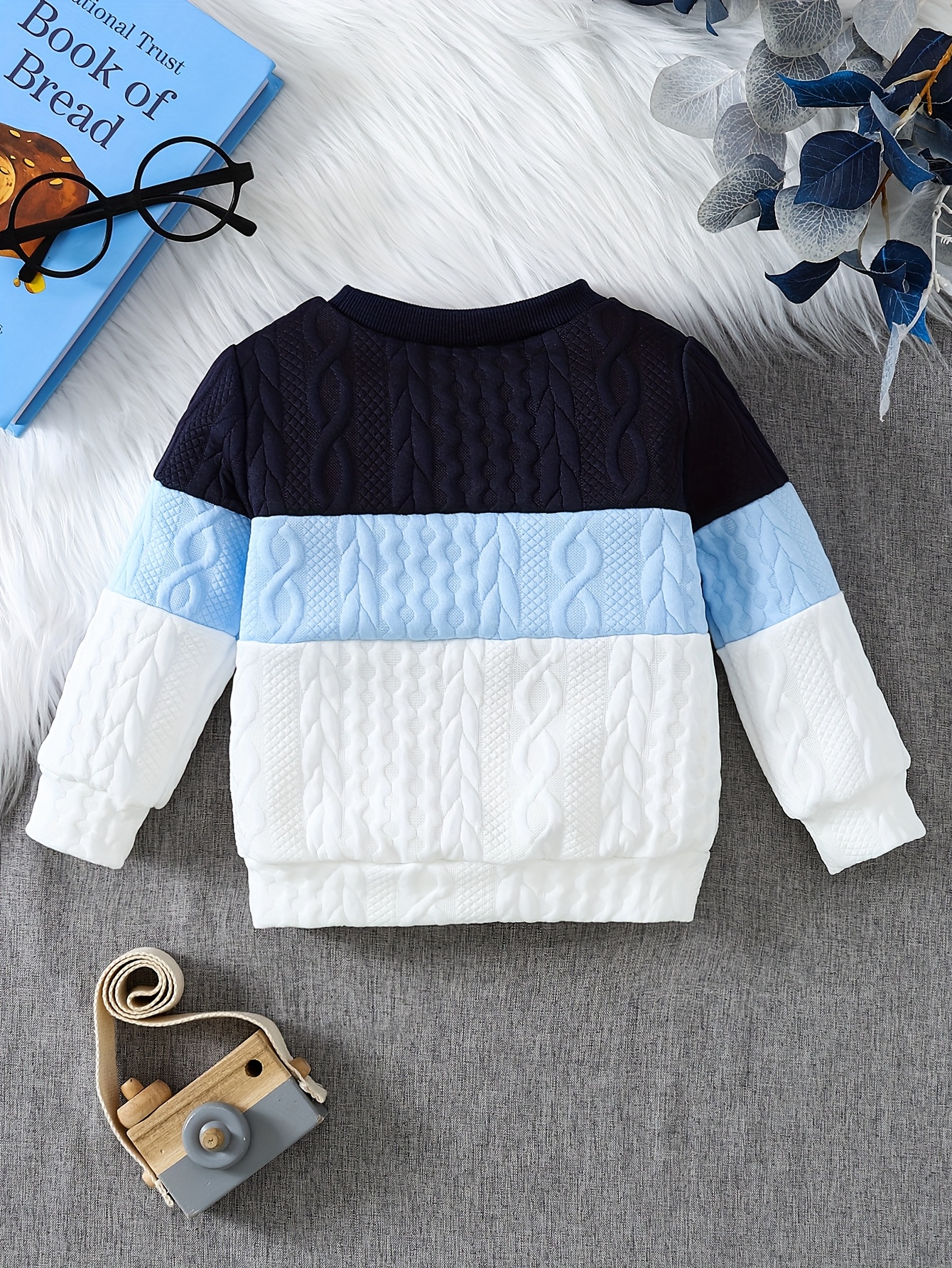 امنحي صغيرك الدفء والأناقة مع سويت شيرت الأولاد الرائع هذا، المصمم خصيصاً ليناسب أيام الخريف والشتاء الباردة. بفضل تصميمه المخطط الجذاب وقصته المريحة، سيصبح القطعة المفضلة لطفلك ليتمتع بحرية الحركة وراحة لا مثيل لها في كل الأوقات.