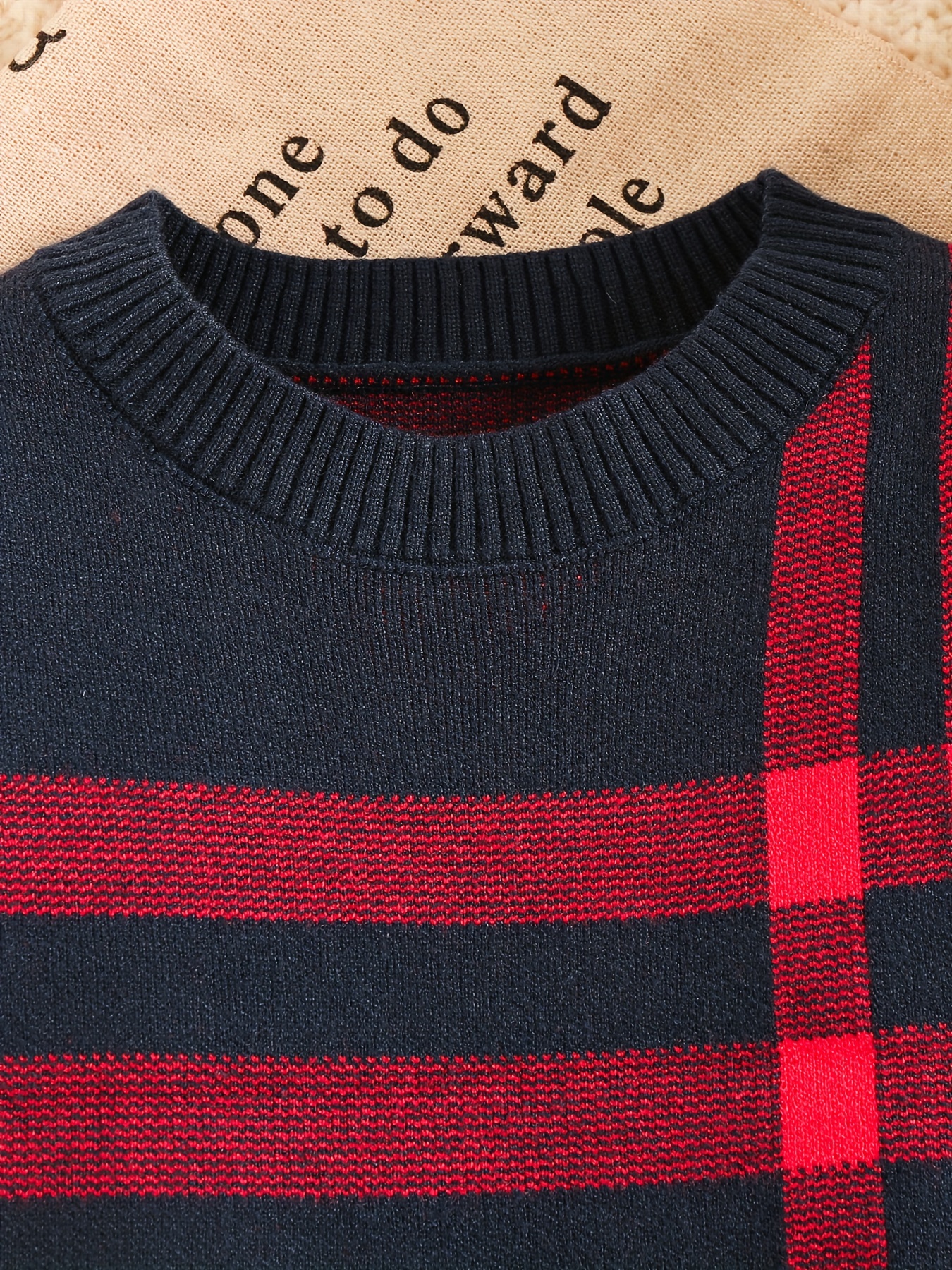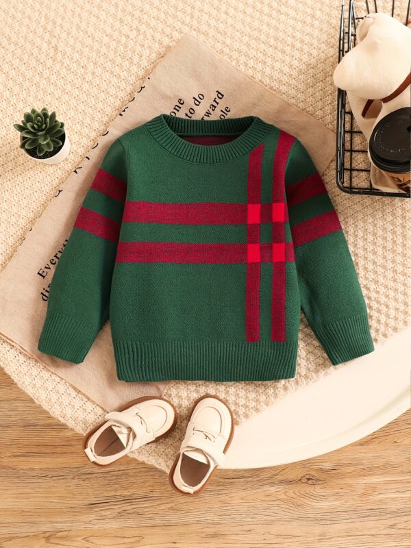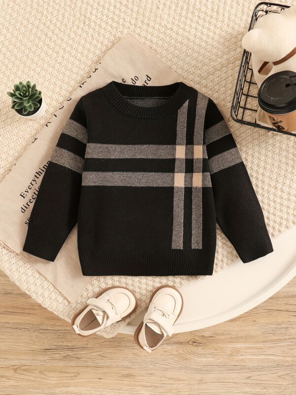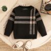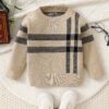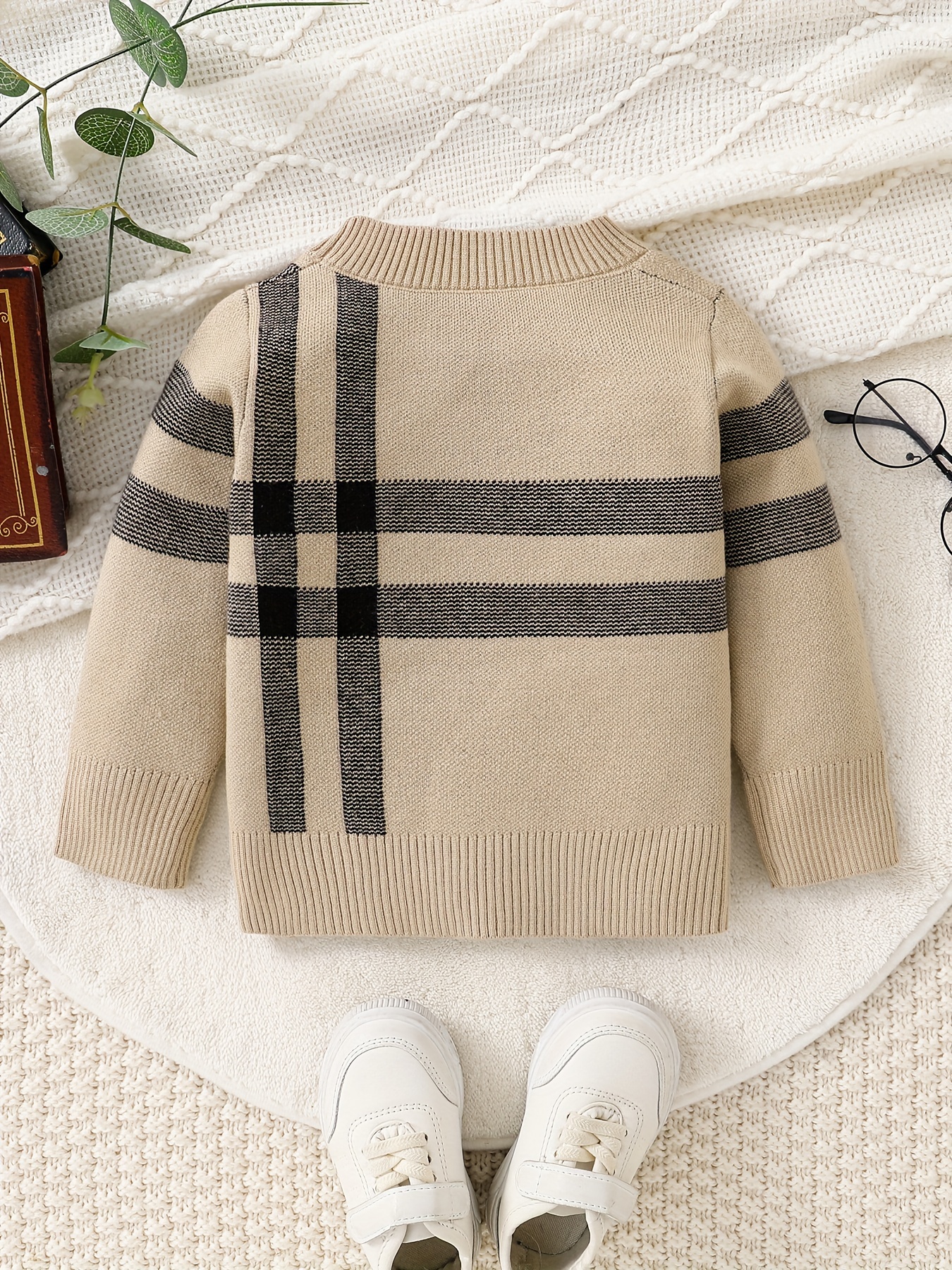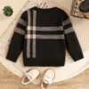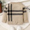 - تصميم أنيق وعصري: يتميز السويتر بنقشة الجينغهام الكلاسيكية بتصميم هندسي محبوك يضفي لمسة عصرية وجاهزية (Preppy Style) على إطلالة صغيرك. إنه الخيار الأمثل ليبرز أناقة طفلك في المدرسة، الرحلات، أو حتى اللقاءات العائلية.