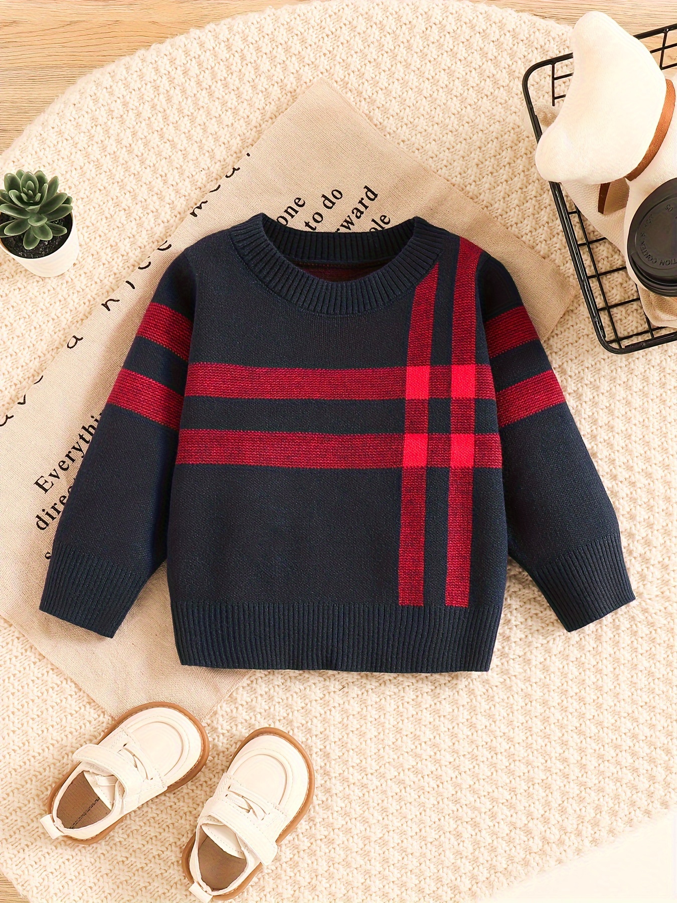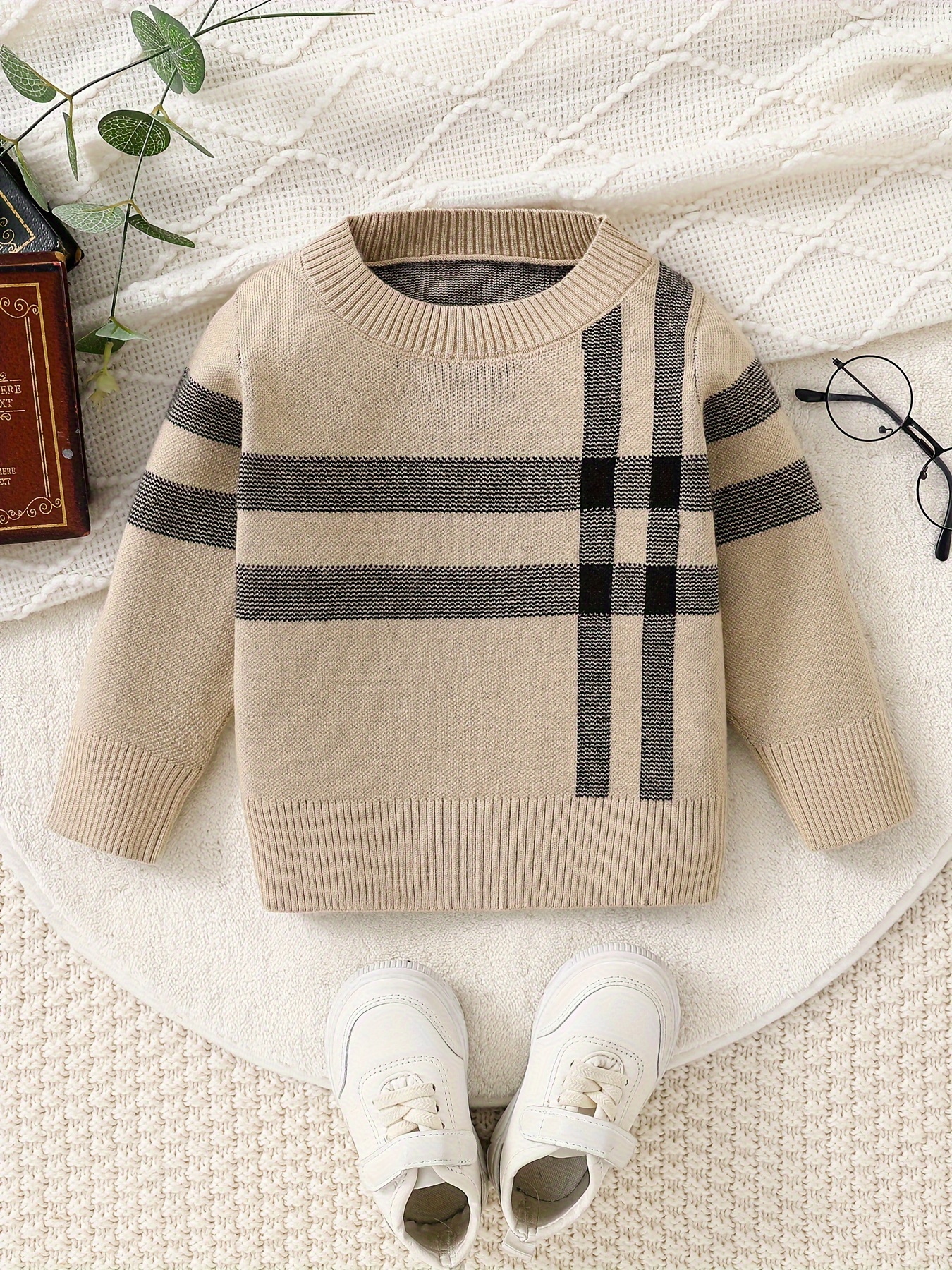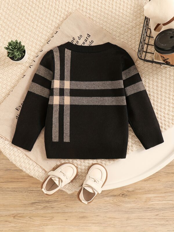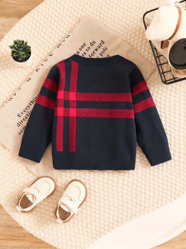 - تصميم أنيق وعصري: يتميز السويتر بنقشة الجينغهام الكلاسيكية بتصميم هندسي محبوك يضفي لمسة عصرية وجاهزية (Preppy Style) على إطلالة صغيرك. إنه الخيار الأمثل ليبرز أناقة طفلك في المدرسة، الرحلات، أو حتى اللقاءات العائلية.