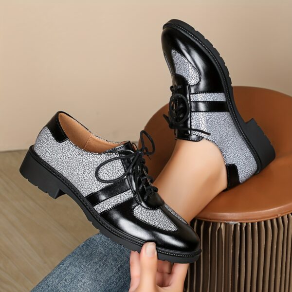 استعدي لتتألقي بأسلوب يجمع بين الأناقة الكلاسيكية والعصرية مع حذاء الأوكسفورد النسائي بالكعب العريض. هذا الحذاء، بتصميمه الفريد ثنائي اللون ولمسته العتيقة، ليس مجرد قطعة أزياء، بل هو تعبير عن شخصيتك الواثقة. مصمم ليمنحك الراحة والثبات على مدار اليوم، ويجعلك جاهزة لمواجهة أي مناسبة بأناقة لا مثيل لها.