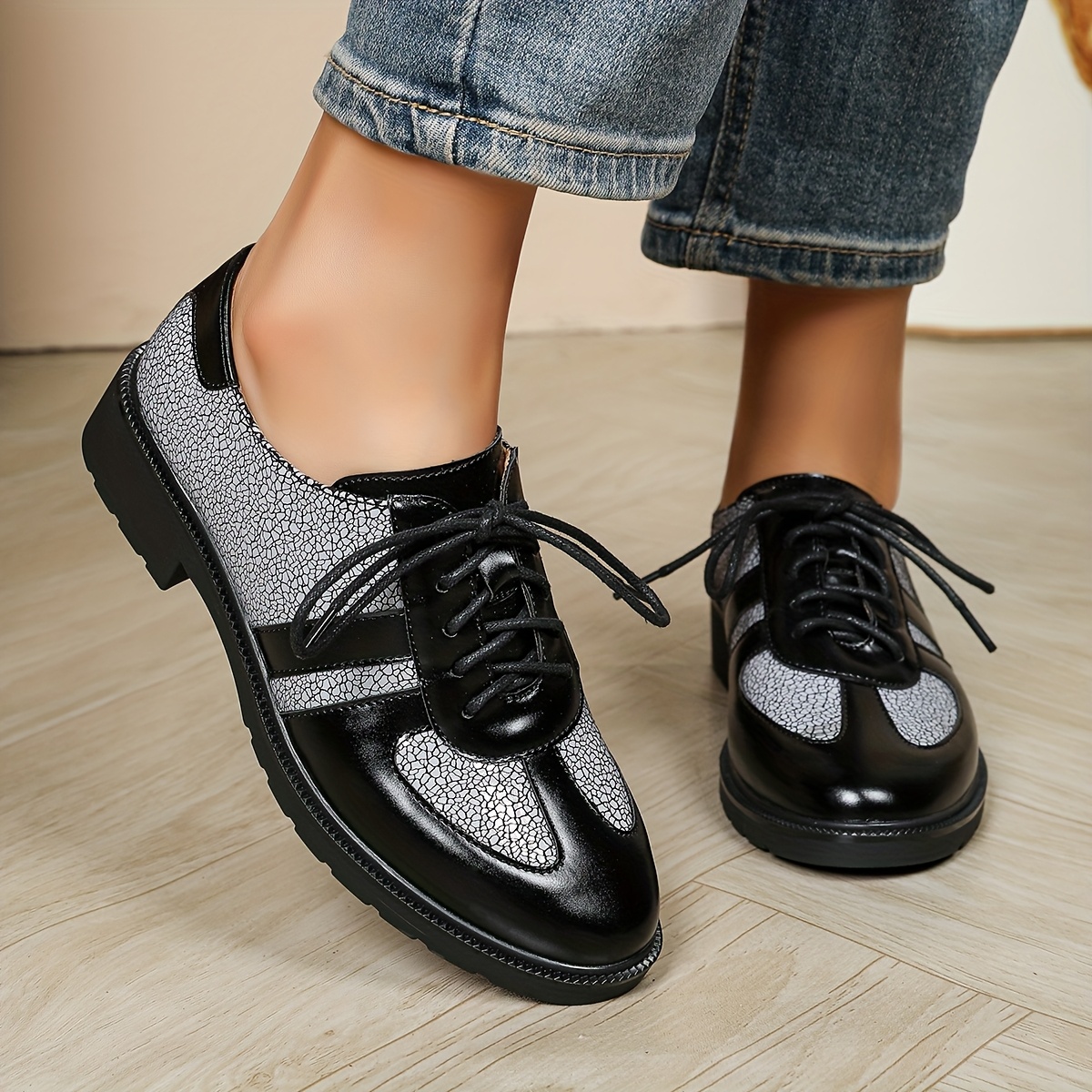 استعدي لتتألقي بأسلوب يجمع بين الأناقة الكلاسيكية والعصرية مع حذاء الأوكسفورد النسائي بالكعب العريض. هذا الحذاء، بتصميمه الفريد ثنائي اللون ولمسته العتيقة، ليس مجرد قطعة أزياء، بل هو تعبير عن شخصيتك الواثقة. مصمم ليمنحك الراحة والثبات على مدار اليوم، ويجعلك جاهزة لمواجهة أي مناسبة بأناقة لا مثيل لها.