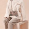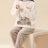 • تصميم الدب الكرتوني الجذاب: تتميز بتصميم الدب الكرتوني البني اللطيف والمطرز بعناية على البلوزة، ليضفي لمسة من البهجة والمرح على إطلالتكِ المنزلية.