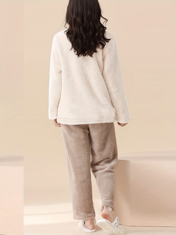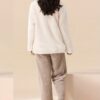 • راحة مثالية وتصميم عملي: طقم من قطعتين يضم بلوزة بأكمام طويلة وسروال طويل، مع ياقة دائرية مريحة وقصة فضفاضة قليلاً بخصر مرن، يوفر لكِ حرية الحركة وراحة لا حدود لها أثناء الاسترخاء أو النوم.