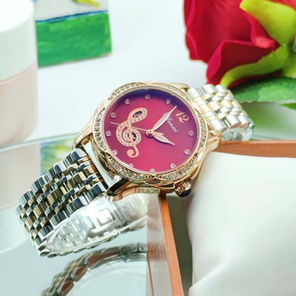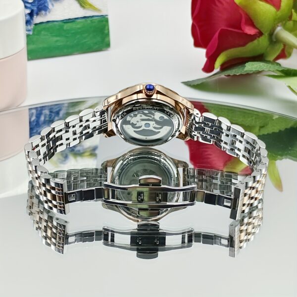 • حركة ميكانيكية أوتوماتيكية دقيقة: استمتعي بتجربة مشاهدة زمنية لا مثيل لها بفضل الحركة الميكانيكية الأوتوماتيكية التي تعمل بحركة معصمكِ، مما يغنيكِ عن الحاجة للبطاريات ويجسد قمة الإتقان الهندسي.