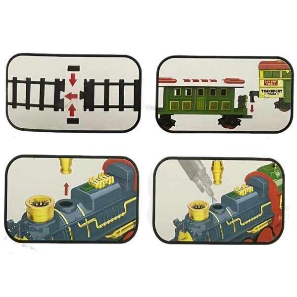 • قطار بخاري كهربائي ساحر: يأتي بأربع عربات تفصيلية وقاطرة تُطلق بخاراً حقيقياً، مما يضفي واقعية لا مثيل لها ومتعة بصرية وسمعية تُبهر الجميع.