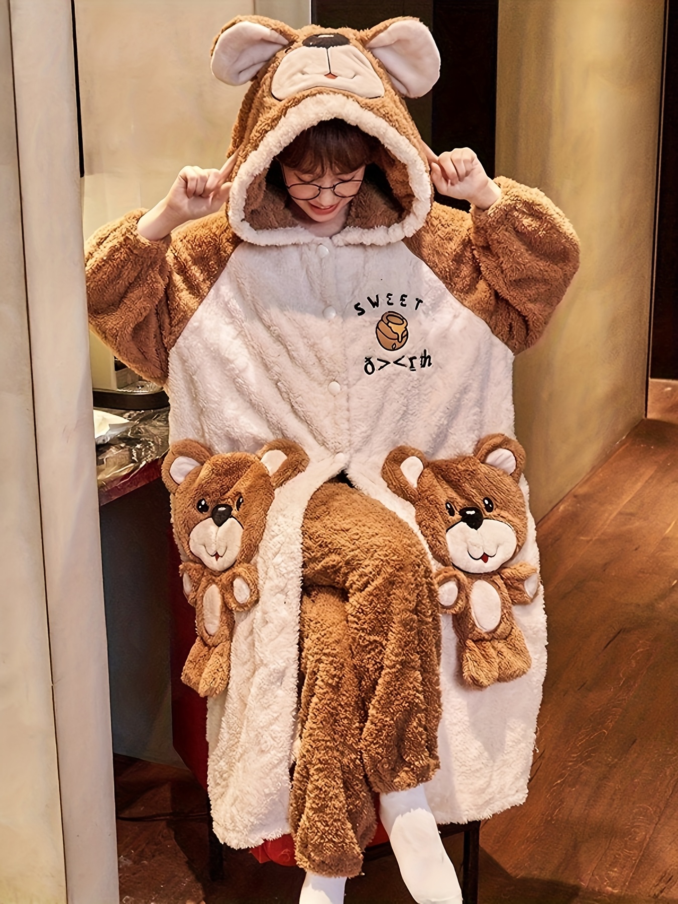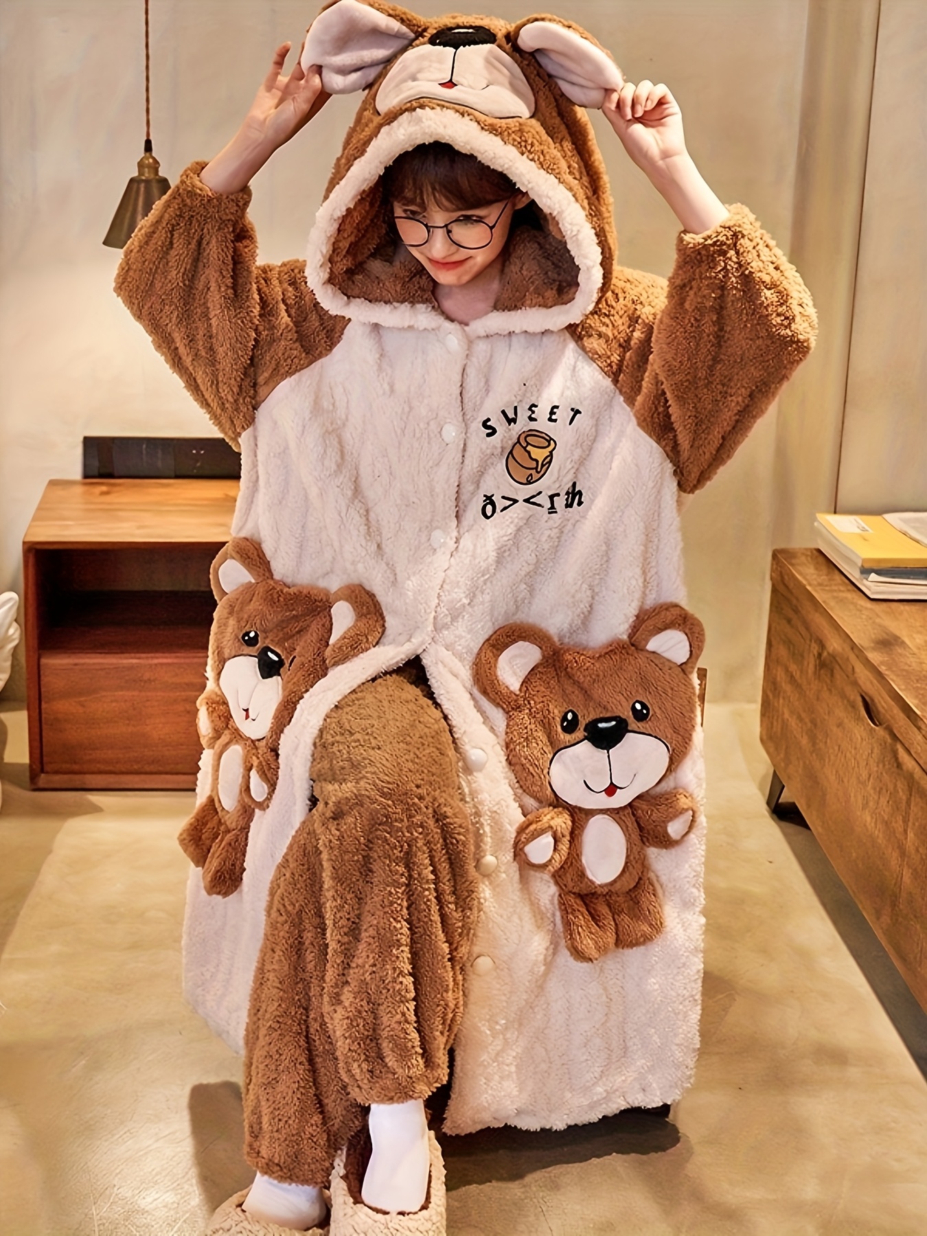 • تصميم عصري وجذاب: يتميز بنقوش كرتونية لطيفة وعصرية تضيف لمسة من البهجة والمرح لإطلالتكِ المنزلية.