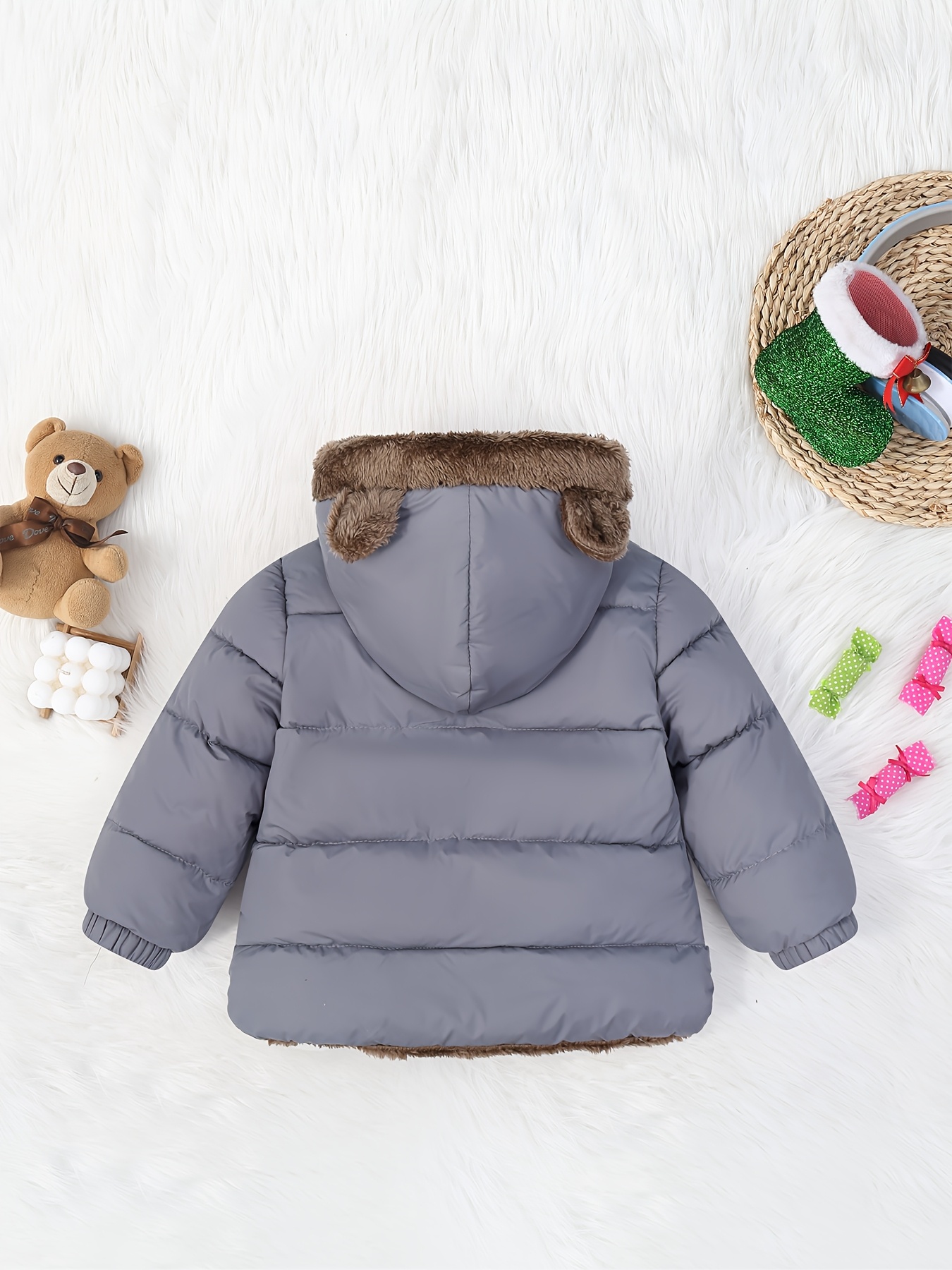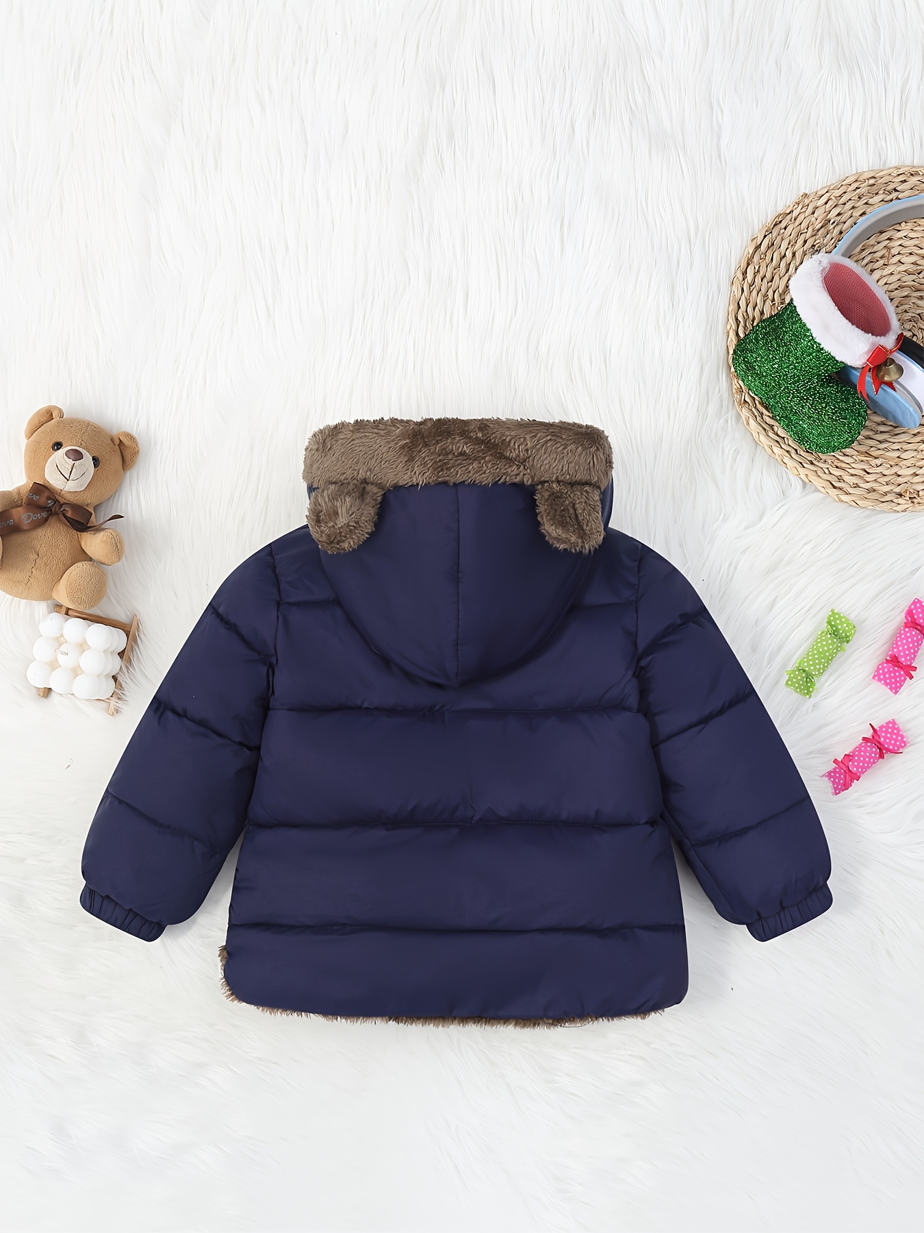 اجعل أيام الشتاء الباردة مليئة بالدفء، الراحة، والأناقة لأميرك الصغير مع جاكيت الدب الشتوي الفريد! مصمم خصيصًا للأولاد من عمر 0-3 سنوات، هذا الجاكيت ليس مجرد قطعة ملابس، بل هو رفيق صغير يضمن لطفلك الحماية التامة والأناقة المميزة في كل مغامرة. دعه يكتشف العالم وهو يشعر بالدفء كحضن دب صغير، مرتدياً هذا الجاكيت الكحلي الجذاب المزود بتصميم أذني الدب اللطيفة.