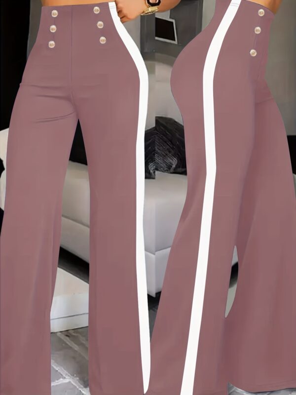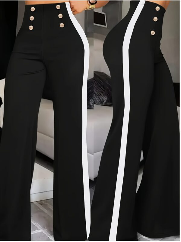 ارتقي بإطلالتك اليومية مع بنطلوننا الأنيق ذو الخصر العالي وقصة الساق الواسعة، المصمم ليمنحكِ الراحة المطلقة والأناقة العصرية في آن واحد. هذا البنطلون هو الإضافة المثالية لخزانة ملابسك، فهو يجمع بين التصميم الأوروبي العصري واللمسة الكاجوال الراقية.