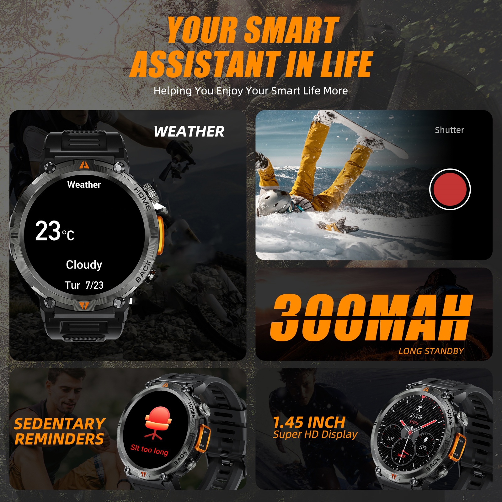 - شاشة TFT نابضة بالحياة: استمتع بعرض مرئي فائق الوضوح على شاشة TFT بحجم 1.45 بوصة ودقة 360×360 بكسل، توفر ألوانًا غنية وتفاصيل دقيقة لسهولة القراءة تحت أي ظرف.