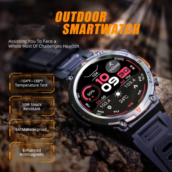 - مكالمات لاسلكية سلسة: ابقَ على اتصال دائم! مع تقنية البلوتوث 5.2 المتقدمة، يمكنك إجراء واستقبال المكالمات مباشرة من معصمك، بالإضافة إلى التوافق التام مع هواتف iPhone وأندرويد لتجربة استخدام متكاملة.