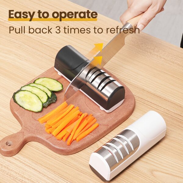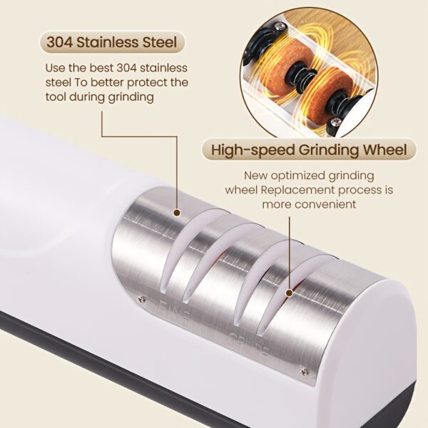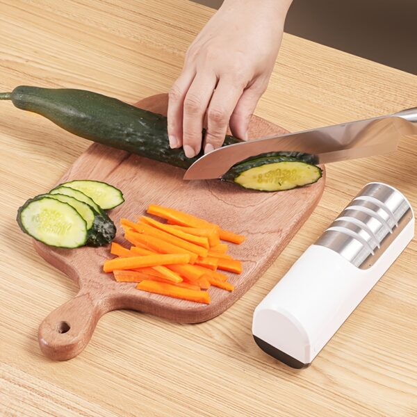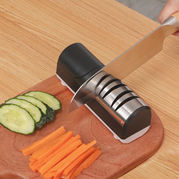 • تشغيل بلمسة واحدة: لا داعي للتعقيد! عملية شحذ سهلة وبسيطة للجميع، فقط بلمسة زر واحدة لتحصل على سكاكين جاهزة للعمل.
