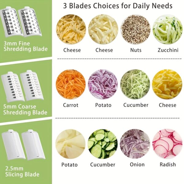 - متعددة الوظائف بثلاث شفرات: قطّع، افرم، ابشر، واطحن! بفضل شفراتها الثلاثة القابلة للتبديل، يمكنك تحضير كل شيء من الخضروات والفاكهة إلى اللحوم والمكسرات بسهولة لا تصدق، لتلبية جميع احتياجاتك.