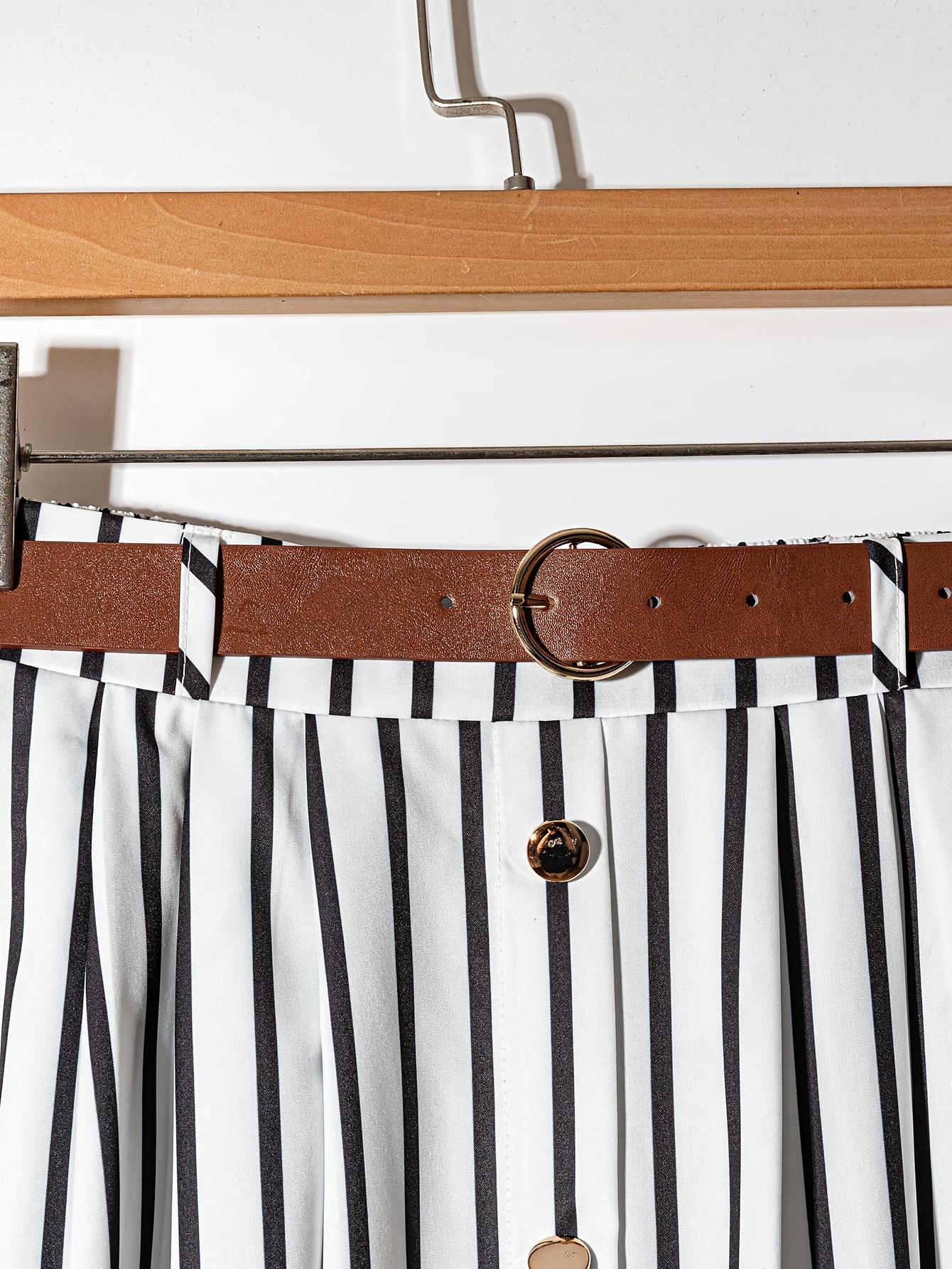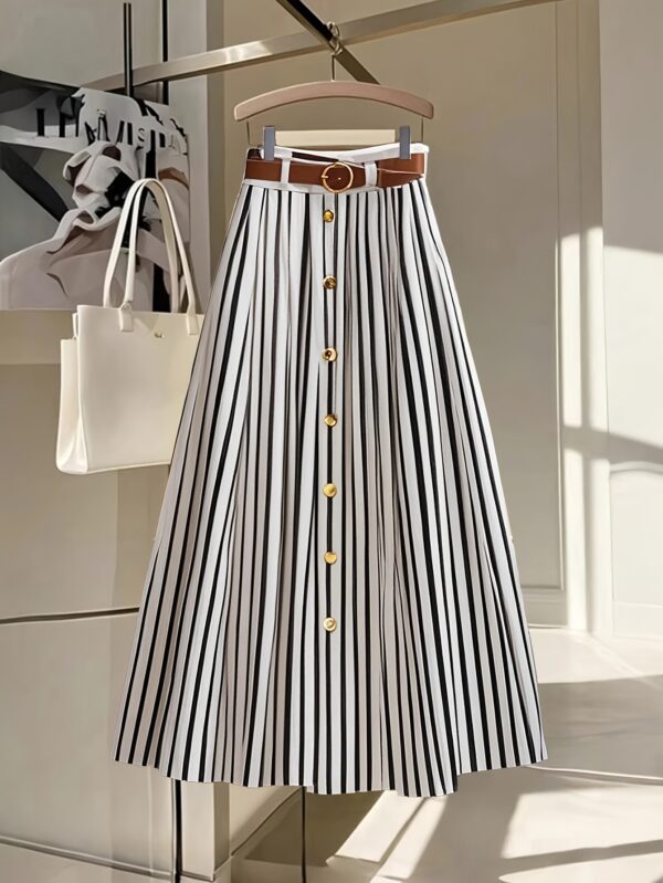 أضيفي لمسة من الرقي والجاذبية إلى خزانتك مع هذه التنورة الميني الأنيقة بقصة A-Line، المصممة خصيصًا لتلائم إطلالاتك المتنوعة من المكتب إلى الحفلات. تتميز هذه التنورة بتصميمها المخطط الجذاب وحزامها الأنيق الذي يبرز جمال خصرك، مما يجعلها خيارًا مثاليًا لكل سيدة تبحث عن الأناقة والتميز.