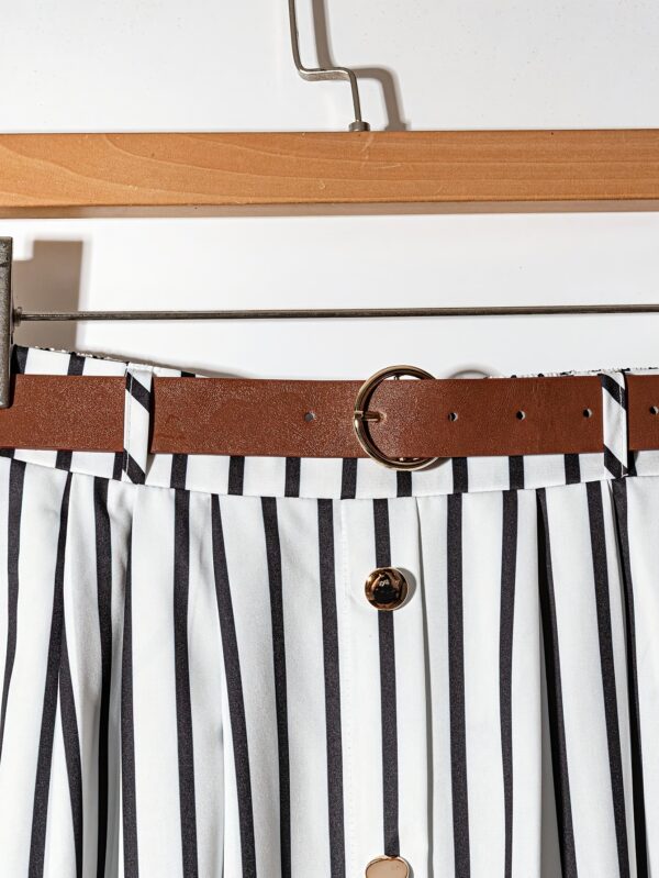 - حزام مطابق لإطلالة متكاملة: تأتي التنورة مع حزام أنيق يضفي لمسة نهائية مثالية على مظهرك ويحدد الخصر بأسلوب راقٍ.