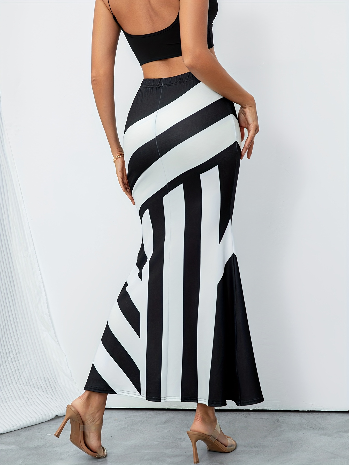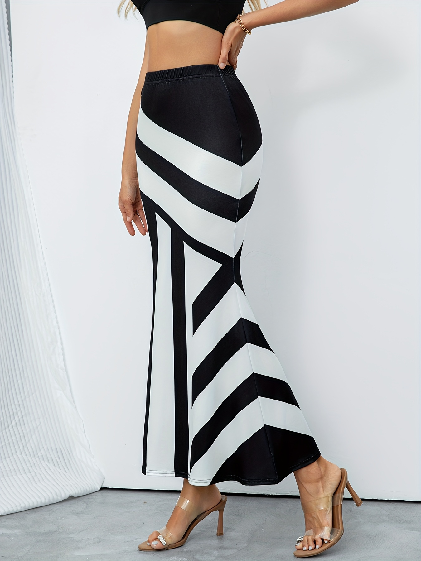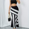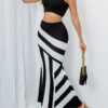 استعدي لإضافة لمسة من الرقي والأناقة الكلاسيكية إلى خزانتك مع هذه التنورة المخططة الرائعة. بتصميمها الفريد باللونين الأسود والأبيض، تضمن لك إطلالة جذابة وعصرية في كل مناسبة، وهي قطعة أساسية لا غنى عنها لجميع فصول السنة.