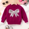 - تصميم فراشة ساحر ولمسات لامعة: يزدان البلوفر بتطريز فراشة أنيق وتفاصيل لامعة جذابة، بالإضافة إلى فيونكة رقيقة تضفي لمسة من البراءة والجمال، لتتألق طفلتك في أي تجمع.