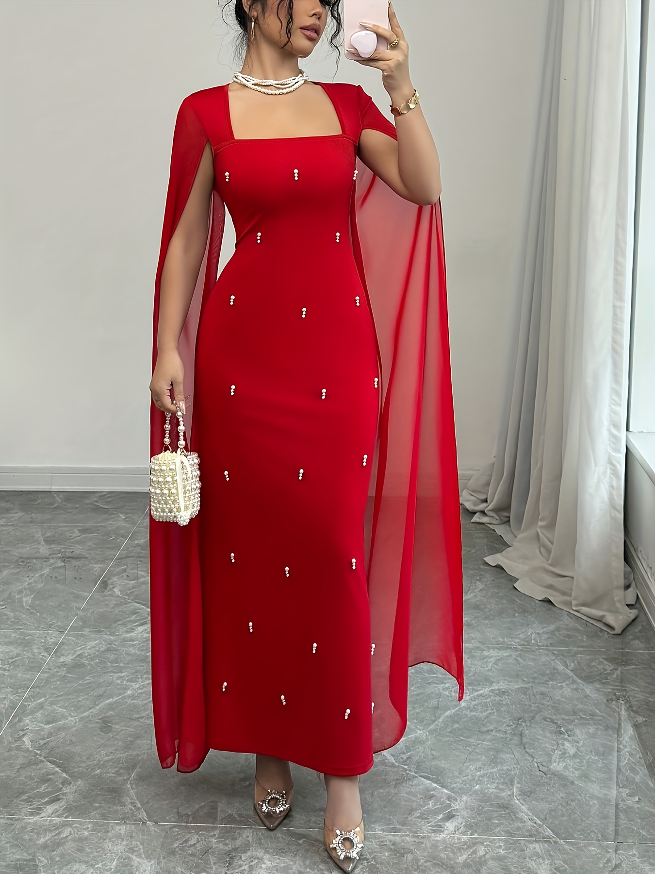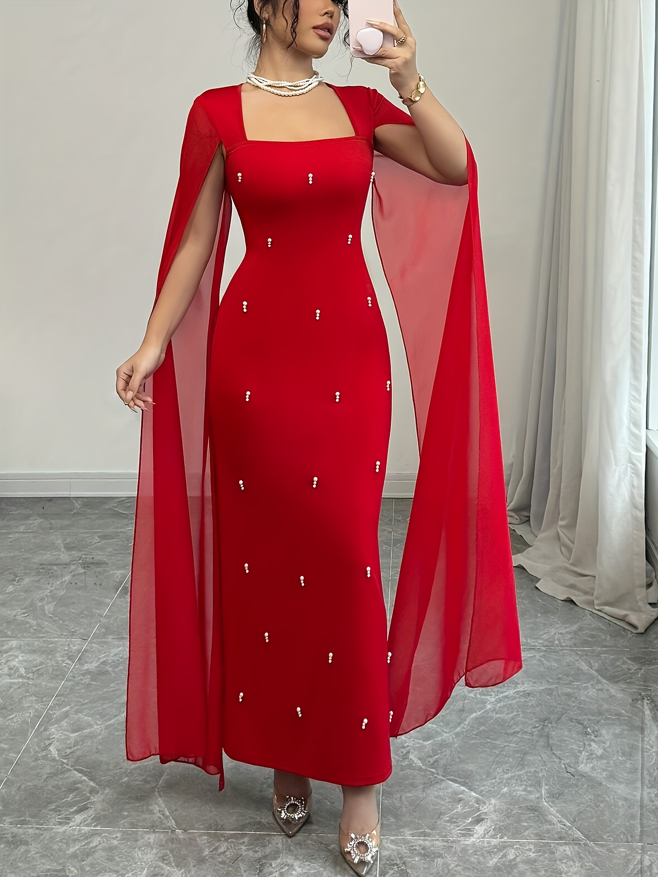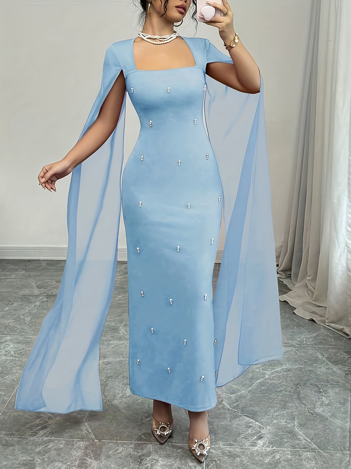 - تصميم رقبة مميز: يضفي تصميم الرقبة المربع لمسة عصرية وجريئة على الفستان، مضيفًا بُعدًا فريدًا لجمالكِ.