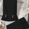- تفاصيل أنيقة وعملية: يزين الطقم تفاصيل أزرار أنيقة ونمط لوني موحد (Solid Color) يسهل تنسيقه، مع بنطال واسع الأرجل وقصة البدلة العلوية التي تضفي لمسة من الرقي على مظهركِ.