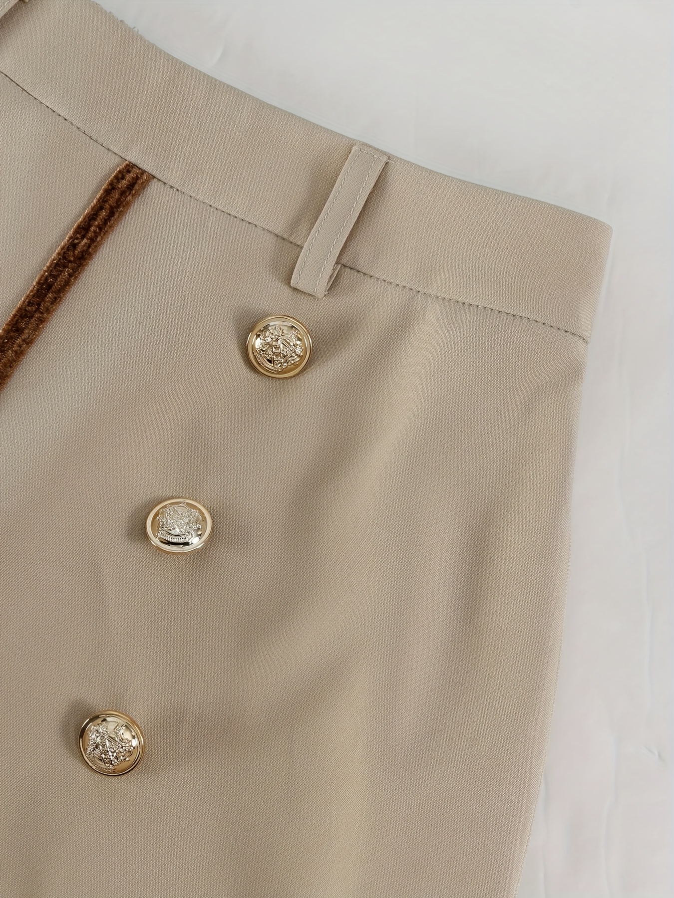 - تفاصيل جذابة: مزودة بأزرار زخرفية أنيقة تضيف لمسة فريدة وراقية إلى مظهرك، مع الحفاظ على خطوط التنورة النظيفة والأنيقة.