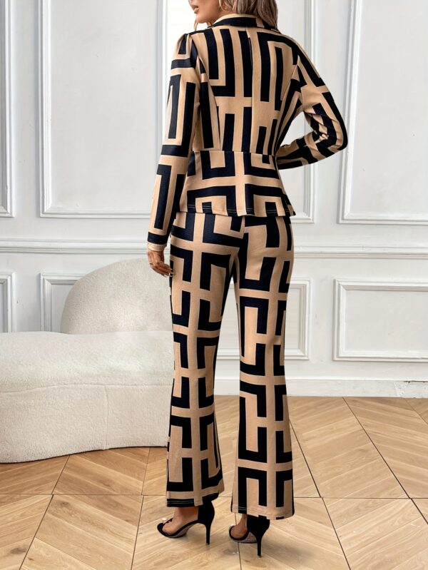أناقة عصرية للمرأة: بدلة نسائية بنقوش هندسية وقصة نحيفة لموسمي الخريف والشتاء