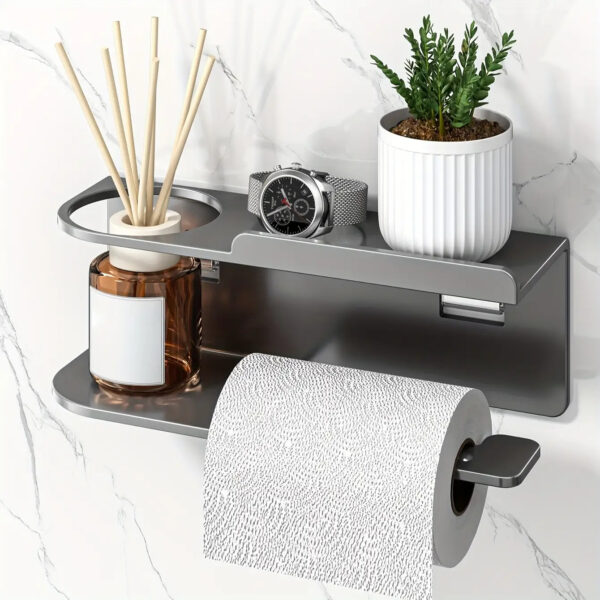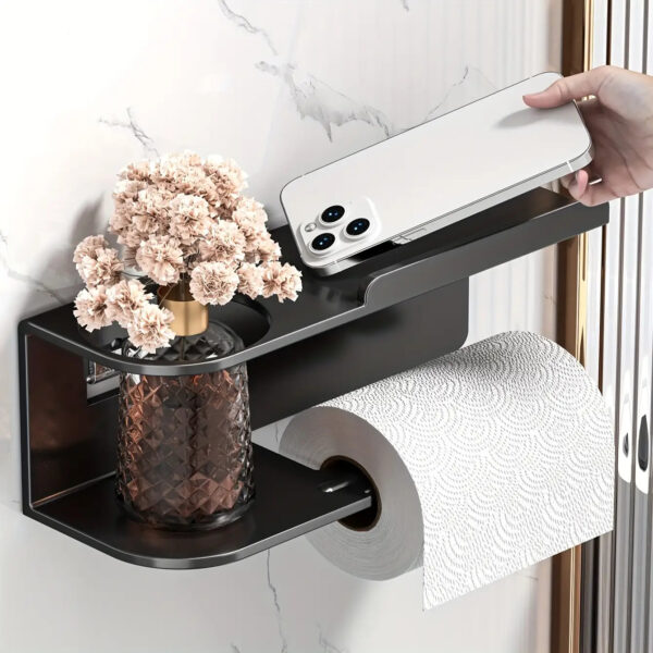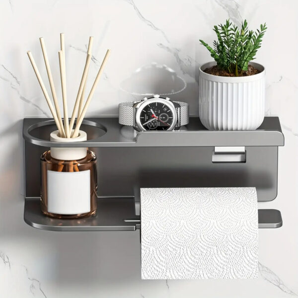 - حل موفر للمساحة: بتصميمه المبتكر المثبت على الحائط، يستغل هذا الحامل المساحات العمودية بفعالية، مما يحرر مساحة قيمة على الأرض ويجعل حمامك يبدو أوسع وأكثر تنظيماً وجمالاً.