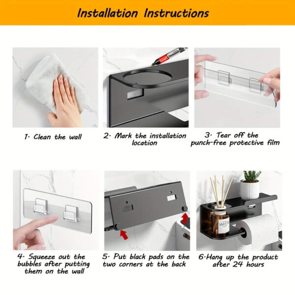 - تركيب فائق السهولة: لا حاجة لأي ثقب في جدران حمامك! بفضل تقنية اللصق الذاتي القوية، يمكنك تركيبه في ثوانٍ معدودة دون أدوات أو فوضى، مع ضمان ثبات يدوم طويلاً وموثوقية مطلقة.