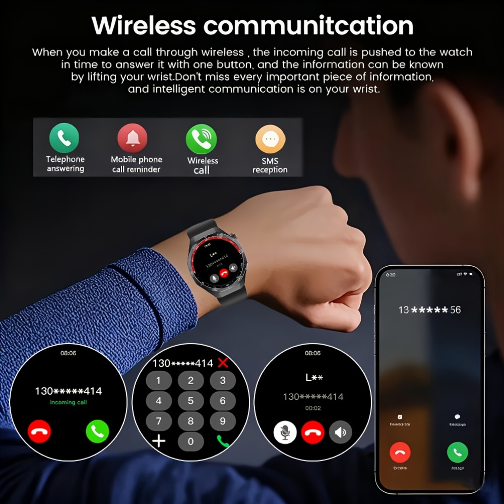 - الاتصال السلس: ابقَ متصلاً دائمًا! استقبل وقم بإجراء المكالمات مباشرة من معصمك، واستلم إشعارات الرسائل والتطبيقات دون الحاجة لإخراج هاتفك.