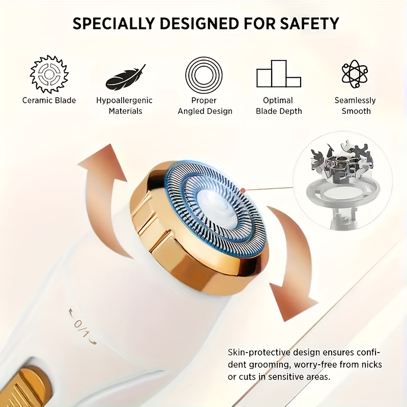 • نتائج احترافية في المنزل: استمتعي بلمسة نهائية ناعمة وحريرية تدوم طويلاً، وكأنكِ خرجتِ للتو من صالون التجميل، كل هذا بفضل تقنية الحلاقة الدقيقة التي يوفّرها.