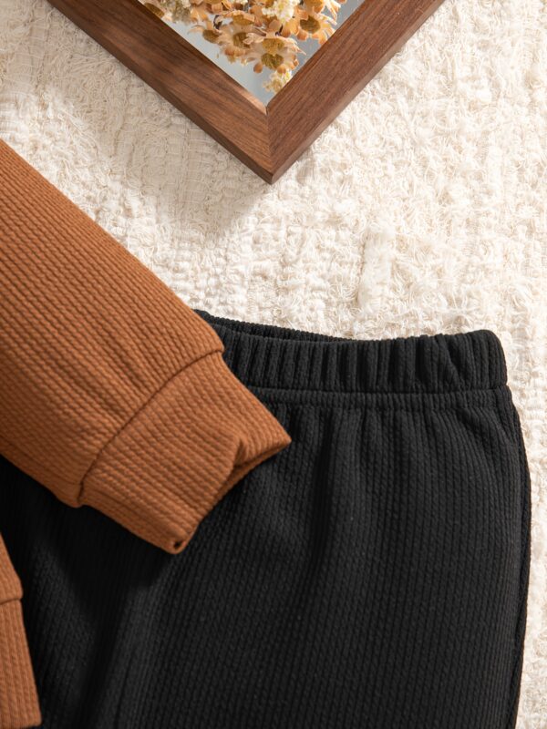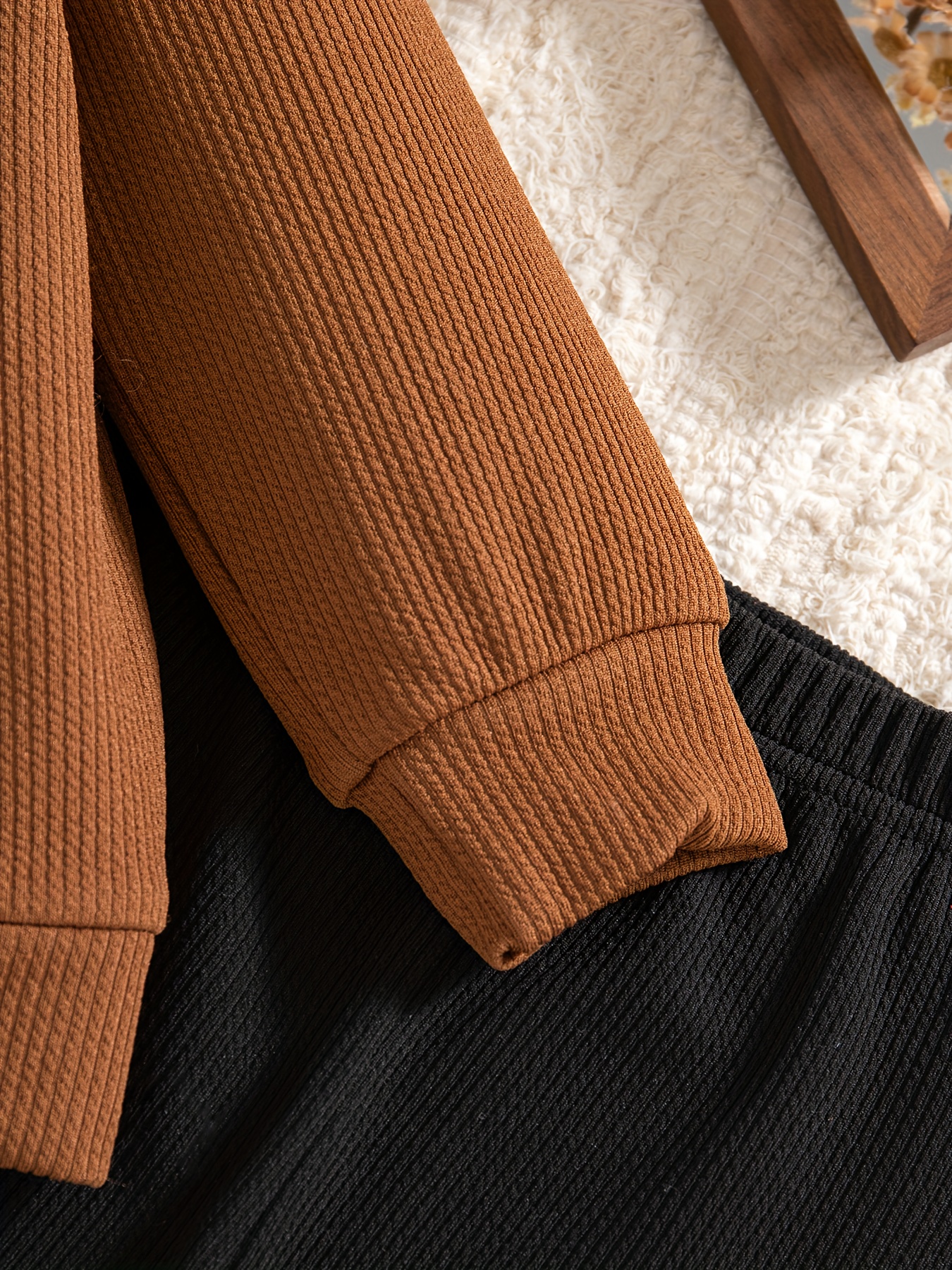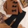 - دفء ونعومة فائقة: صُنع الطقم من نسيج محبوك عالي الجودة بمزيج 95% بوليستر و5% سباندكس، ليمنح طفلتكِ دفئاً استثنائياً وملمساً ناعماً يلامس بشرتها الرقيقة بلطف، مثالياً لأيام الخريف والشتاء الباردة.