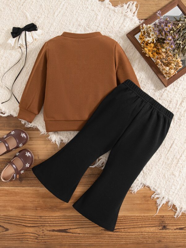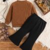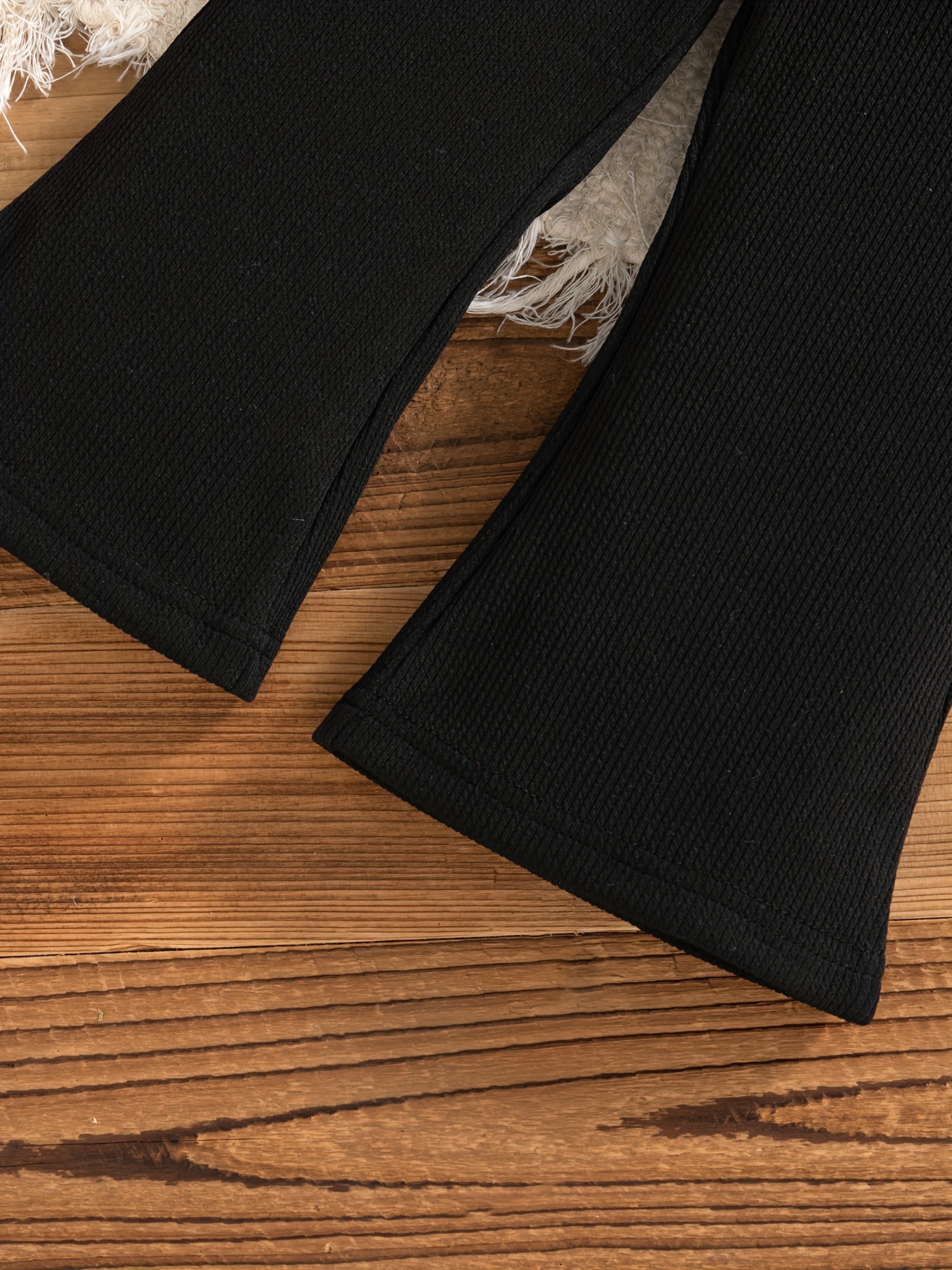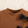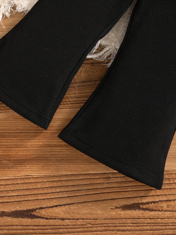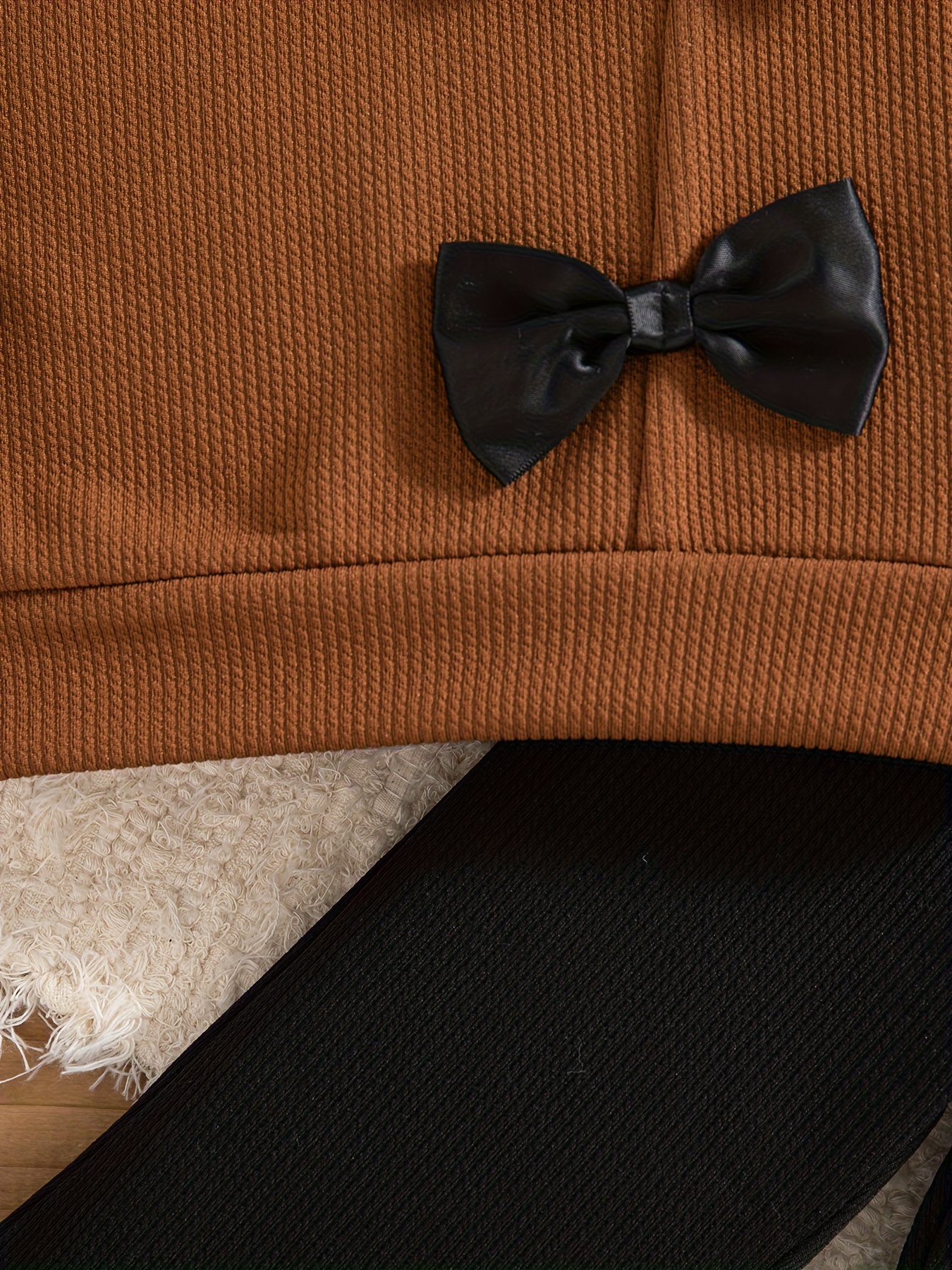 - تصميم أنيق وجذاب: تتميز البلوزة بتفصيلة فيونكة سوداء ساحرة، ويأتي البنطال بلون أسود سادة وقصة واسعة قليلاً، مما يخلق إطلالة متكاملة وعصرية تجعل صغيرتكِ محط الأنظار.