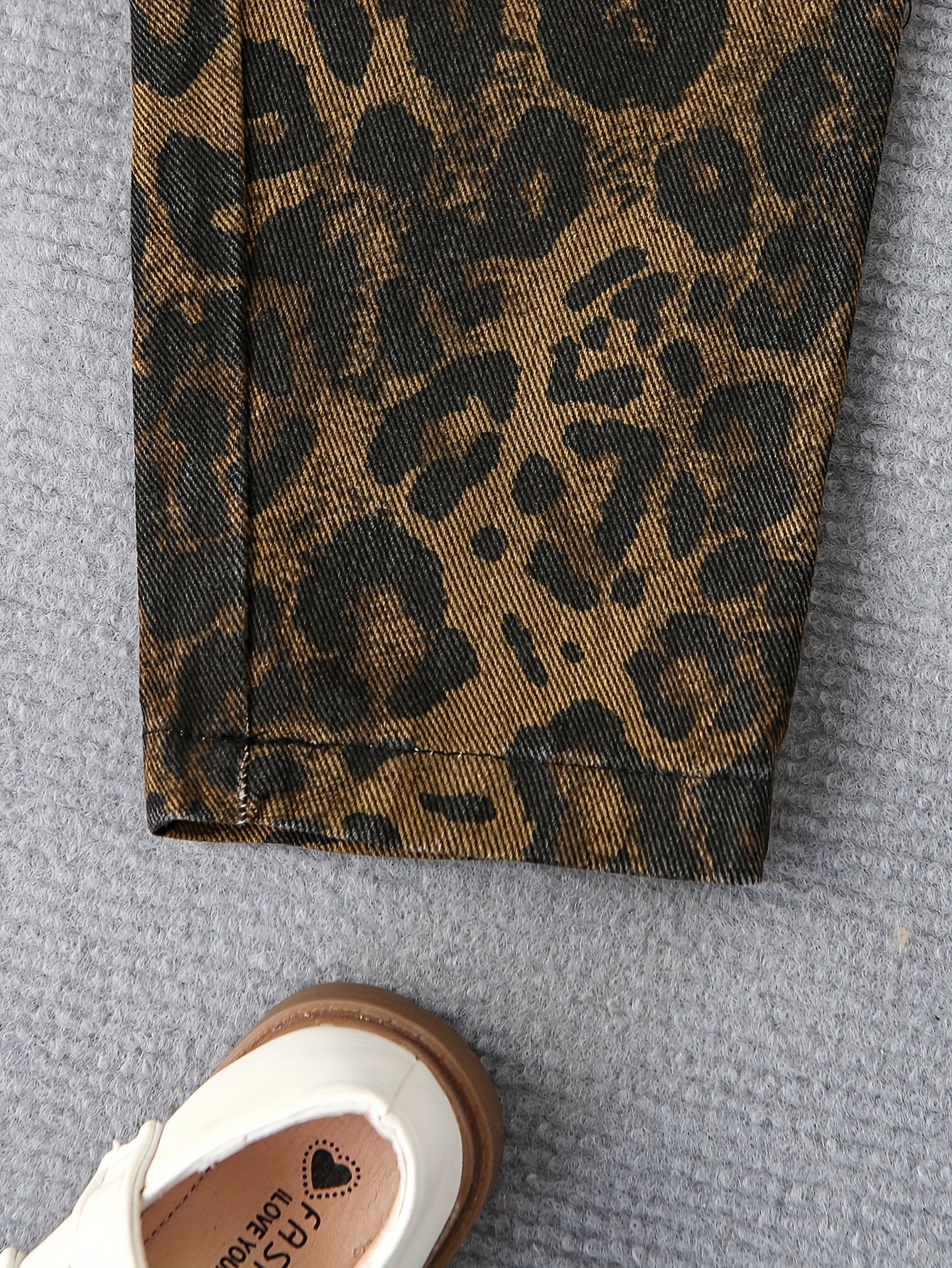 - تصميم عصري وجذاب: يتميز بنقشة النمر الفريدة ومظهر الدنيم المزيف الأنيق، مما يضمن إطلالة جريئة وعصرية لطفلتكِ تلفت الأنظار في كل مكان.