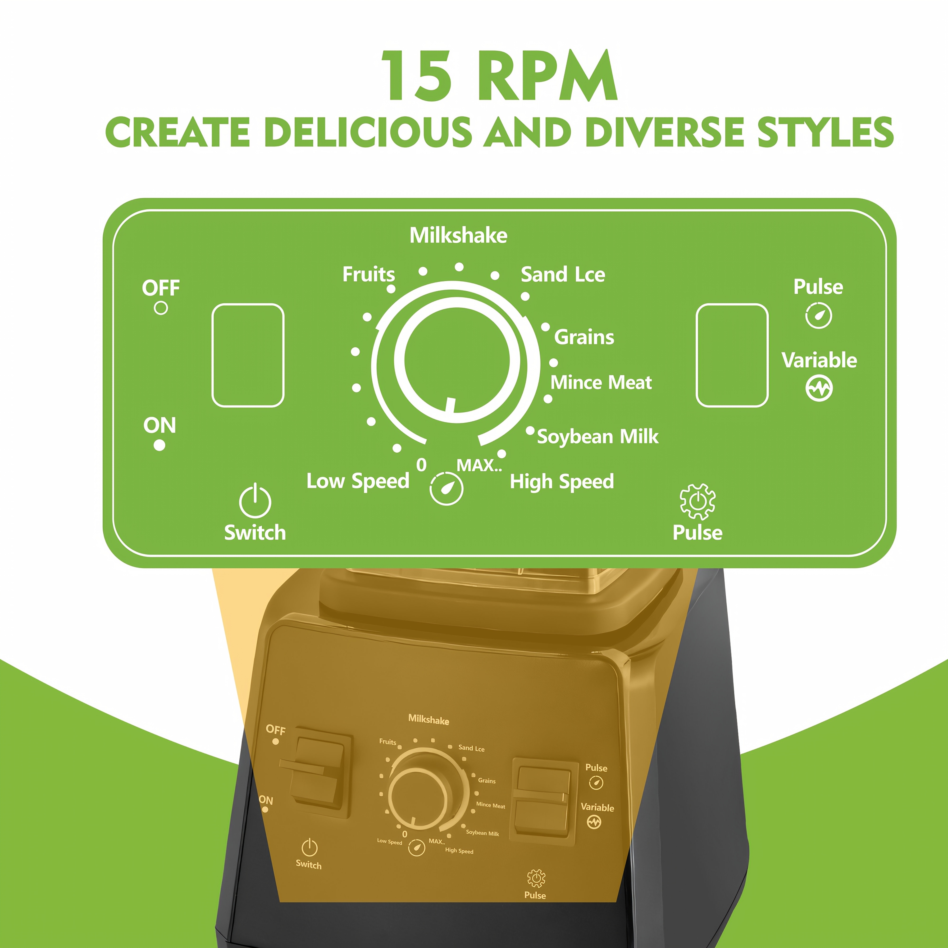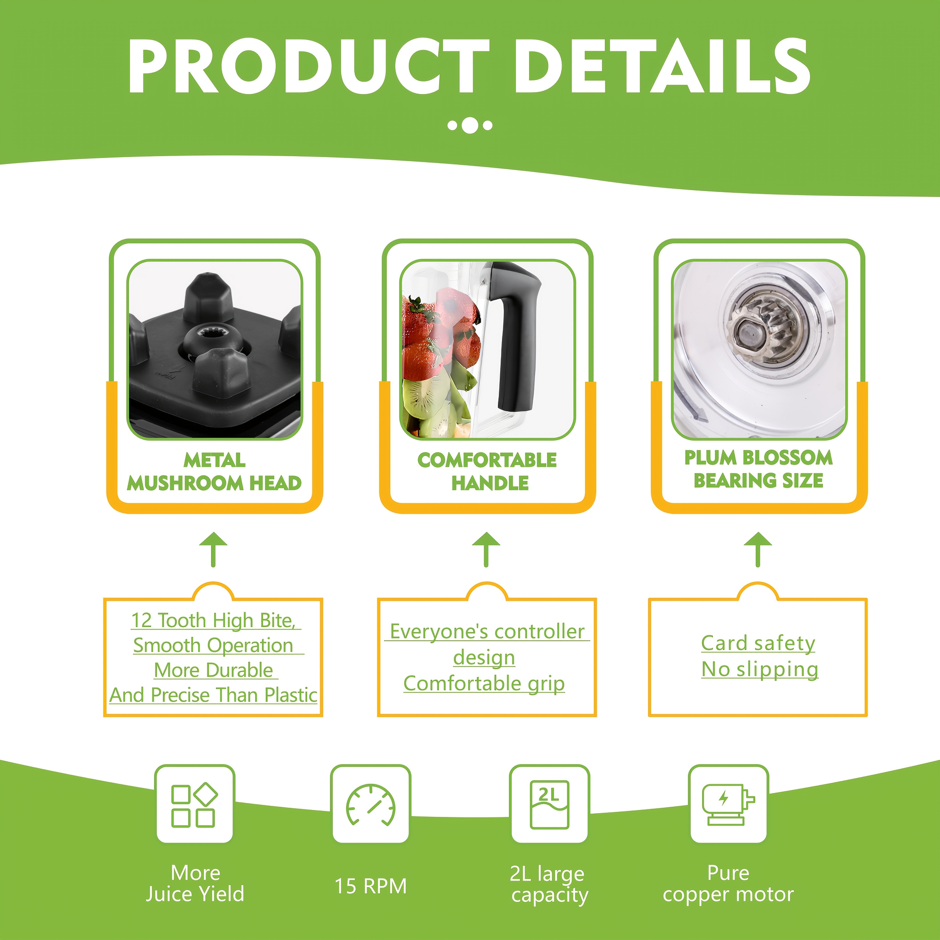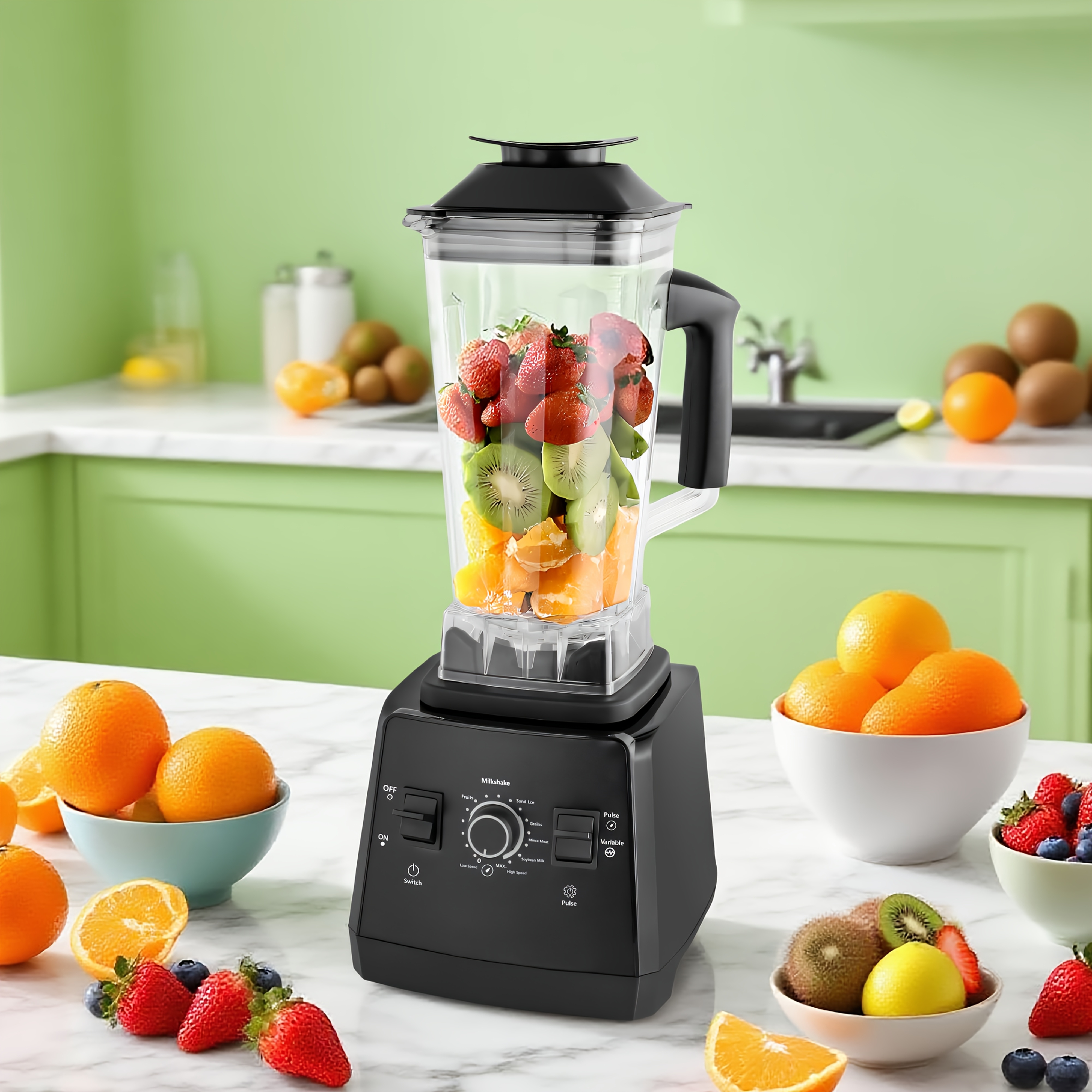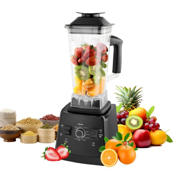 - مصنوع من مواد عالية الجودة: وعاء الخلاط مصنوع من مادة البولي كربونات (PC) المتينة والآمنة غذائيًا، لضمان استخدام طويل الأمد وسهولة في التنظيف والصيانة.