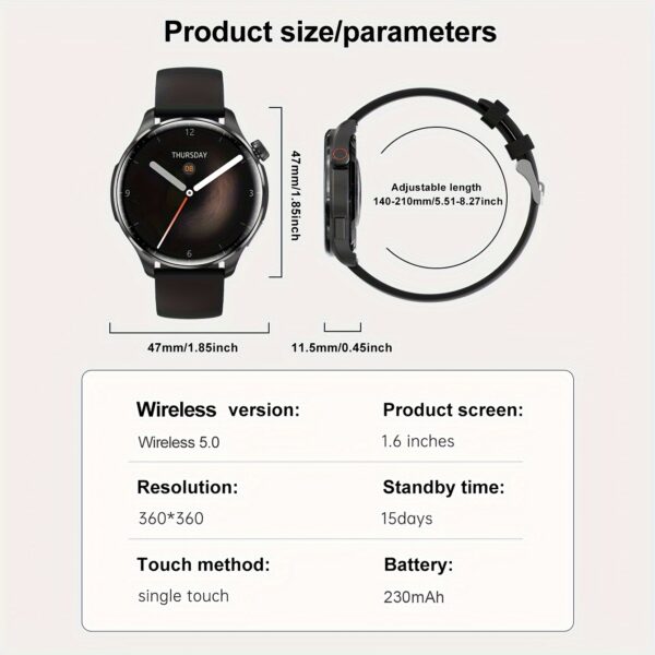 - شحن سهل وعمر بطارية طويل: اشحن ساعتك بسهولة عبر USB واستفد من بطارية الليثيوم بوليمر القابلة لإعادة الشحن التي تضمن لك استخدامًا طويل الأمد دون قلق.
