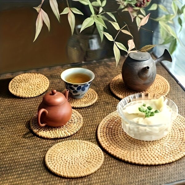 جمال الطبيعة لحماية طاولتك: حصيرة أكواب خشبية منسوجة يدوياً