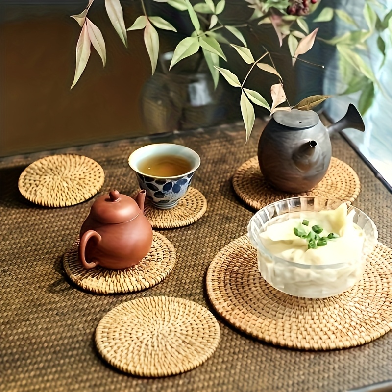 جمال الطبيعة لحماية طاولتك: حصيرة أكواب خشبية منسوجة يدوياً