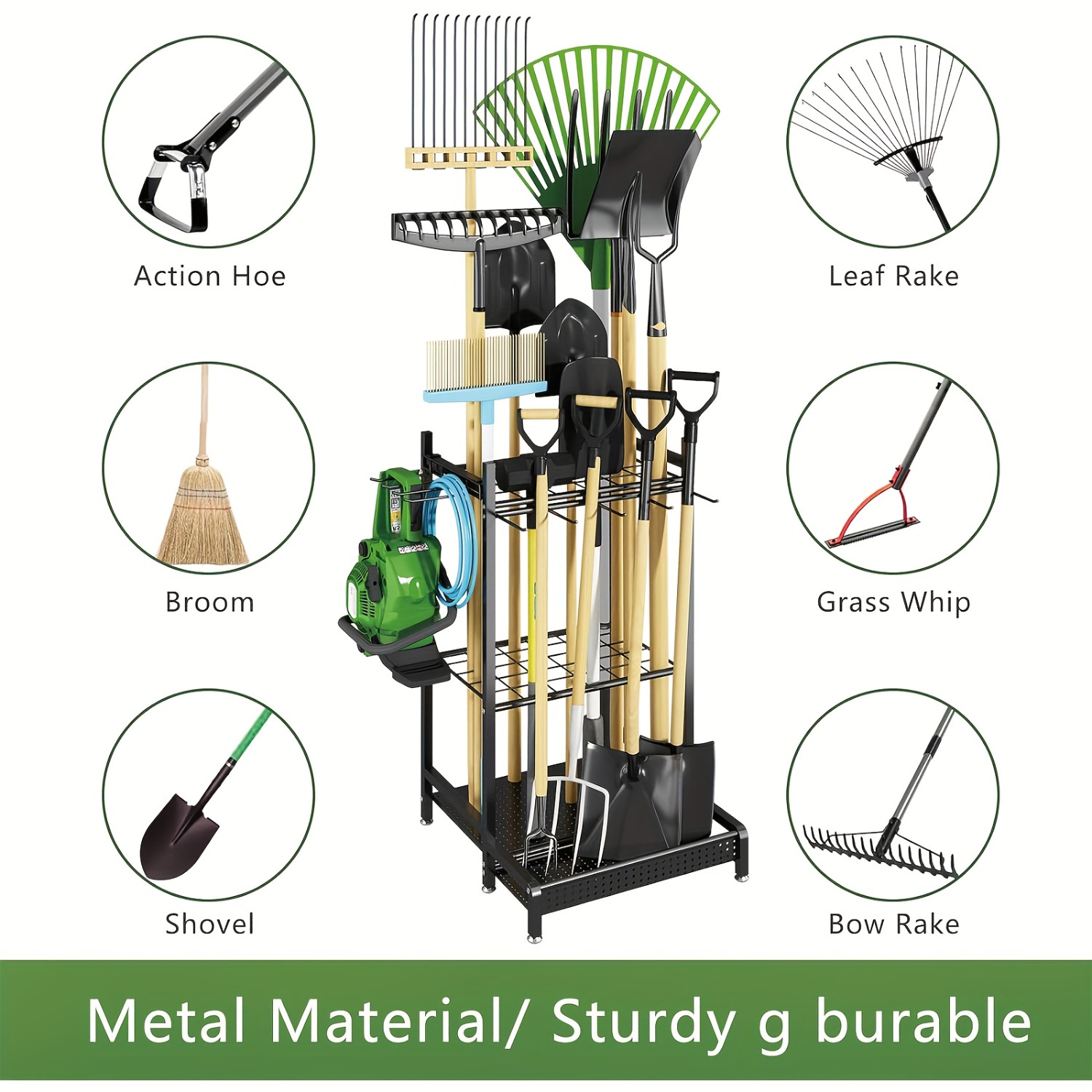 • تنظيم شامل ومتكامل: صُمم خصيصًا ليحتوي على جميع أدواتك، من مجارف ومناجل وأجهزة تقليم الأعشاب وحتى أدوات القص الطويلة، مما يضمن بيئة عمل مرتبة وخالية من الفوضى دائمًا.