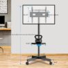 • رف متعدد الاستخدامات مدمج: يشتمل الحامل على رف عملي يوفر مساحة مثالية لوضع الأجهزة الطرفية مثل مشغلات الوسائط، أجهزة الألعاب، أو أجهزة التحكم عن بعد، مما يحافظ على تنظيم مساحتك.