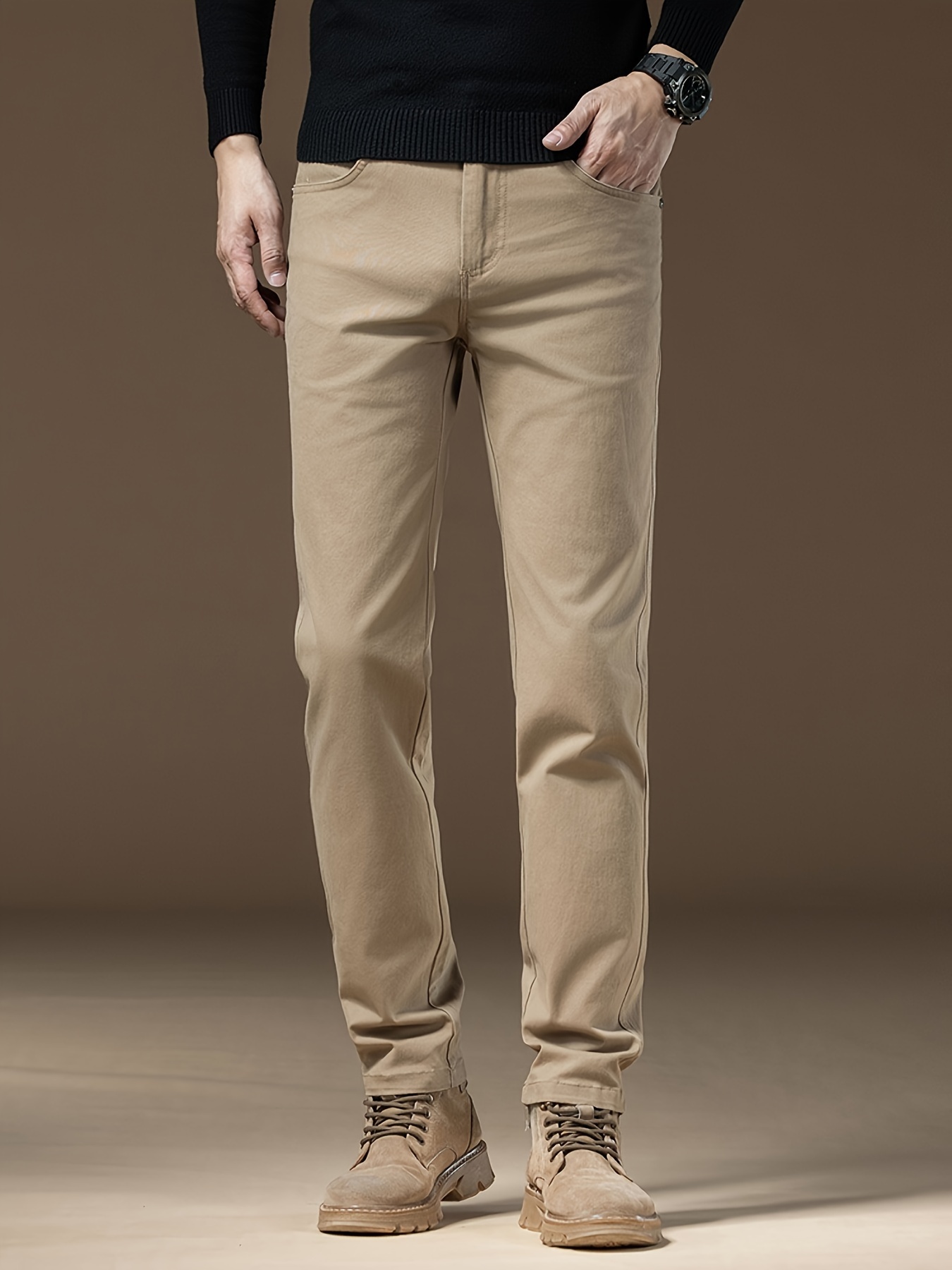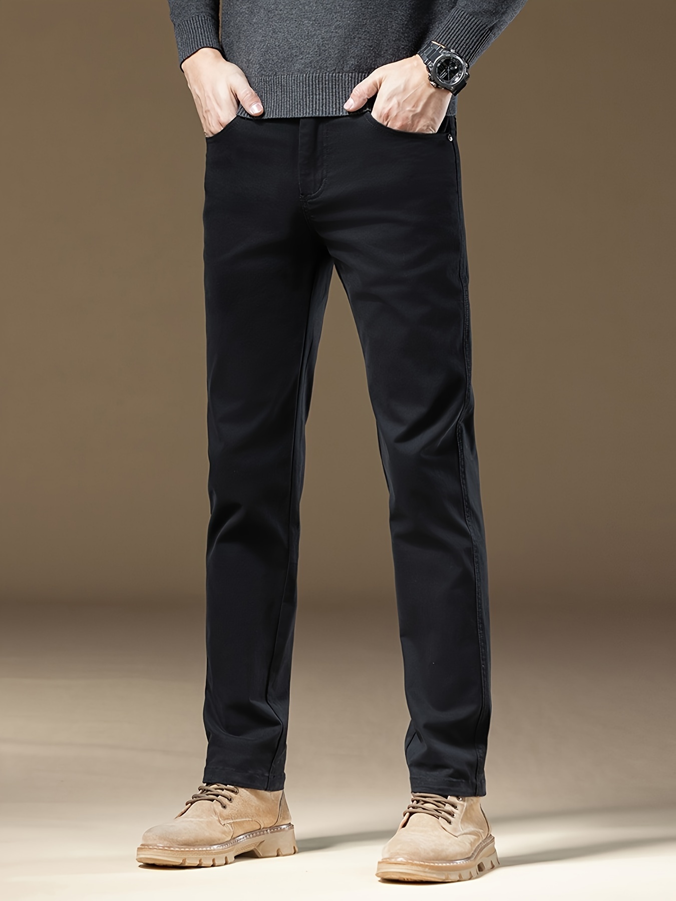 - تفاصيل راقية: مزوّد بزر إغلاق أنيق وسحاب أمامي متين (Button Fly)، ويأتي بخصر متوسط الارتفاع ليمنحك مظهراً متكاملاً وجذاباً يليق بك في كل الأوقات.